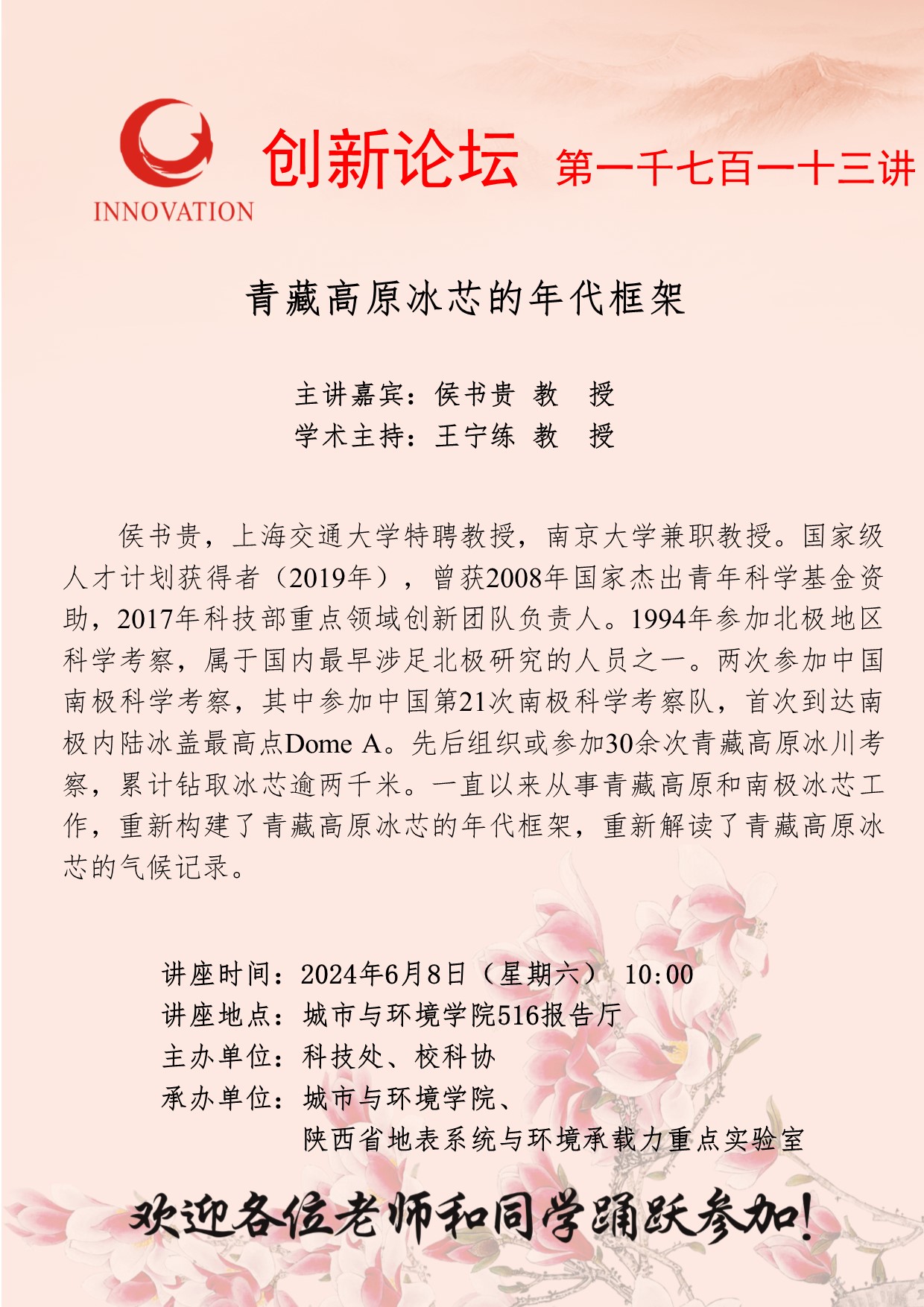 侯书贵 教授 星空app官网创新论坛第一千七百一十三讲:青藏高原冰芯的年代框架 讲座时间 2024年6月8日(星期六) 10:00 讲座地点 城市与环境学院516报告厅 讲座人介绍 侯书贵 教授 讲座内容
