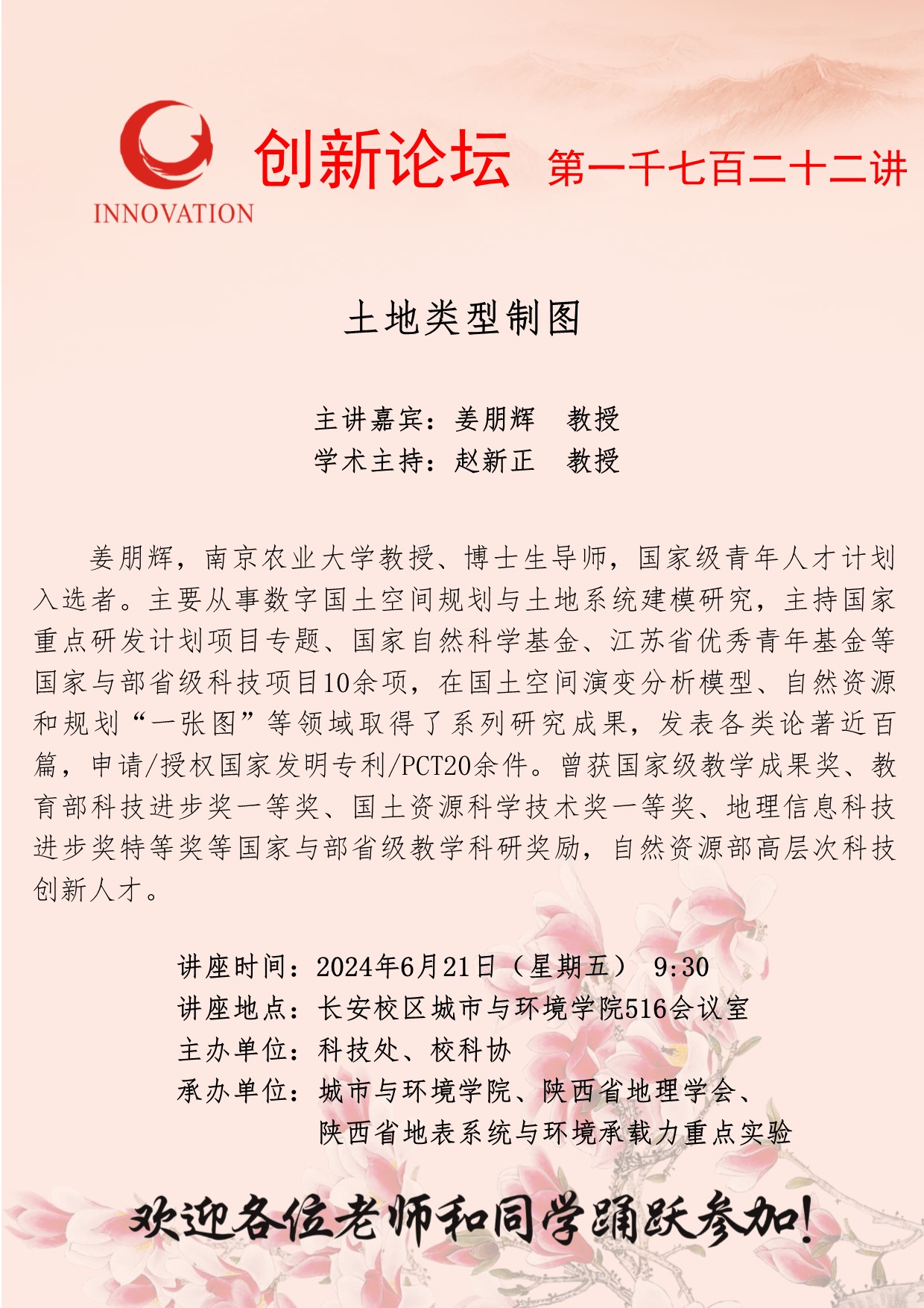 姜朋辉 教授 星空app官网创新论坛第一千七百二十二讲:土地类型制图 讲座时间 2024年6月21日(星期五) 9:30 讲座地点 长安校区城市与环境学院516会议室 讲座人介绍 姜朋辉 教授 讲座内容