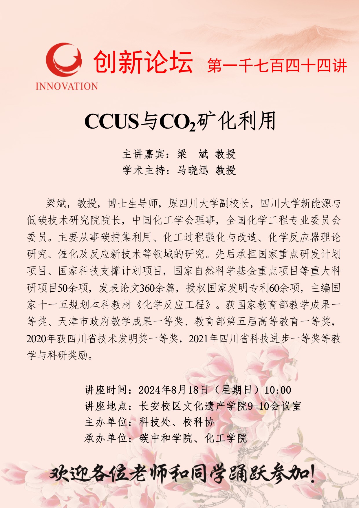 梁斌 教授 星空app官网创新论坛第一千七百四十四讲:CCUS与CO2矿化利用 讲座时间 2024年8月18日(星期日)10:00 讲座地点 长安校区文化遗产学院9-10会议室 讲座人介绍 梁斌 教授 讲座内容
