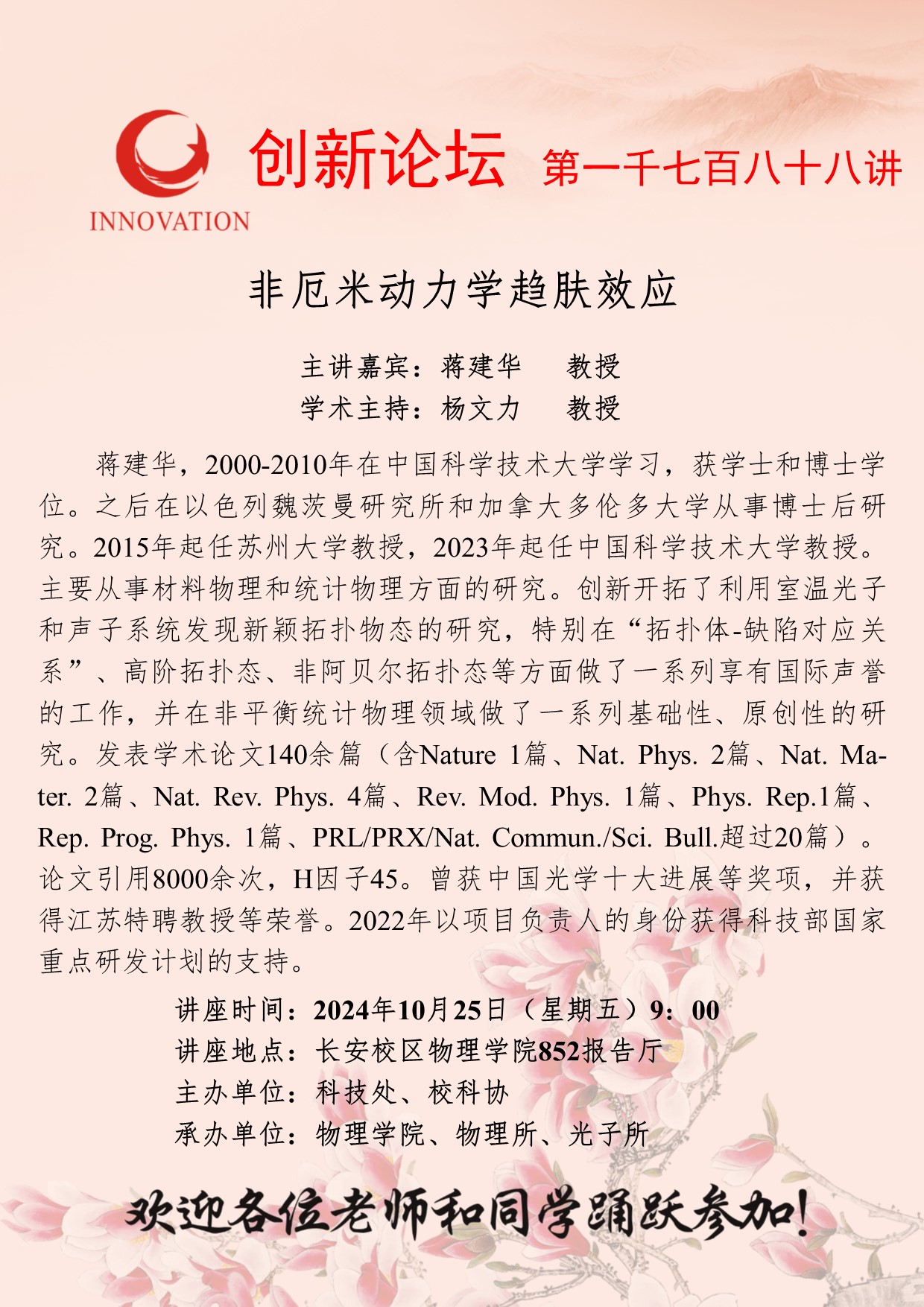 蒋建华 教授 星空app官网创新论坛第一千七百八十八讲:非厄米动力学趋肤效应 讲座时间 2024年10月25日(星期五)9:00 讲座地点 长安校区物理学院852报告厅 讲座人介绍 蒋建华 教授 讲座内容