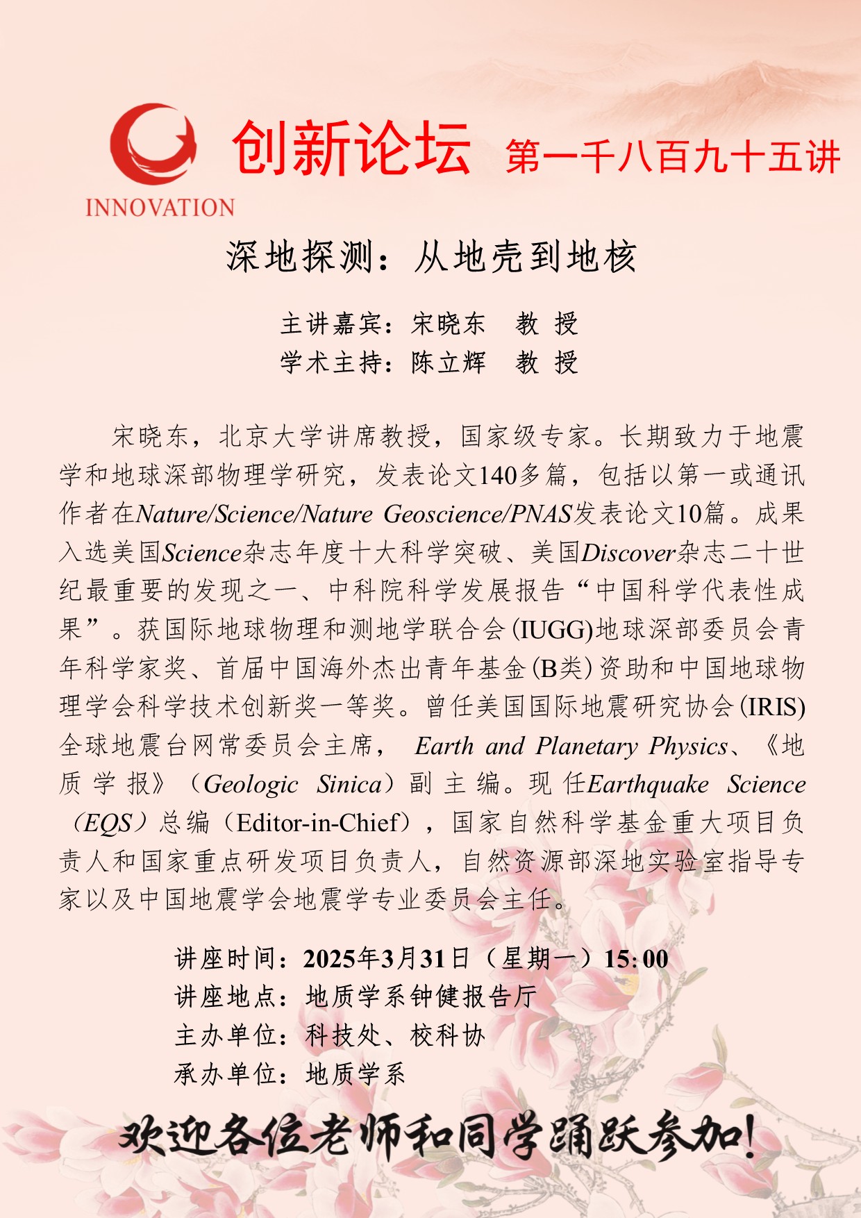 星空app官网创新论坛第一千八百九十五讲:深地探测:从地壳到地核