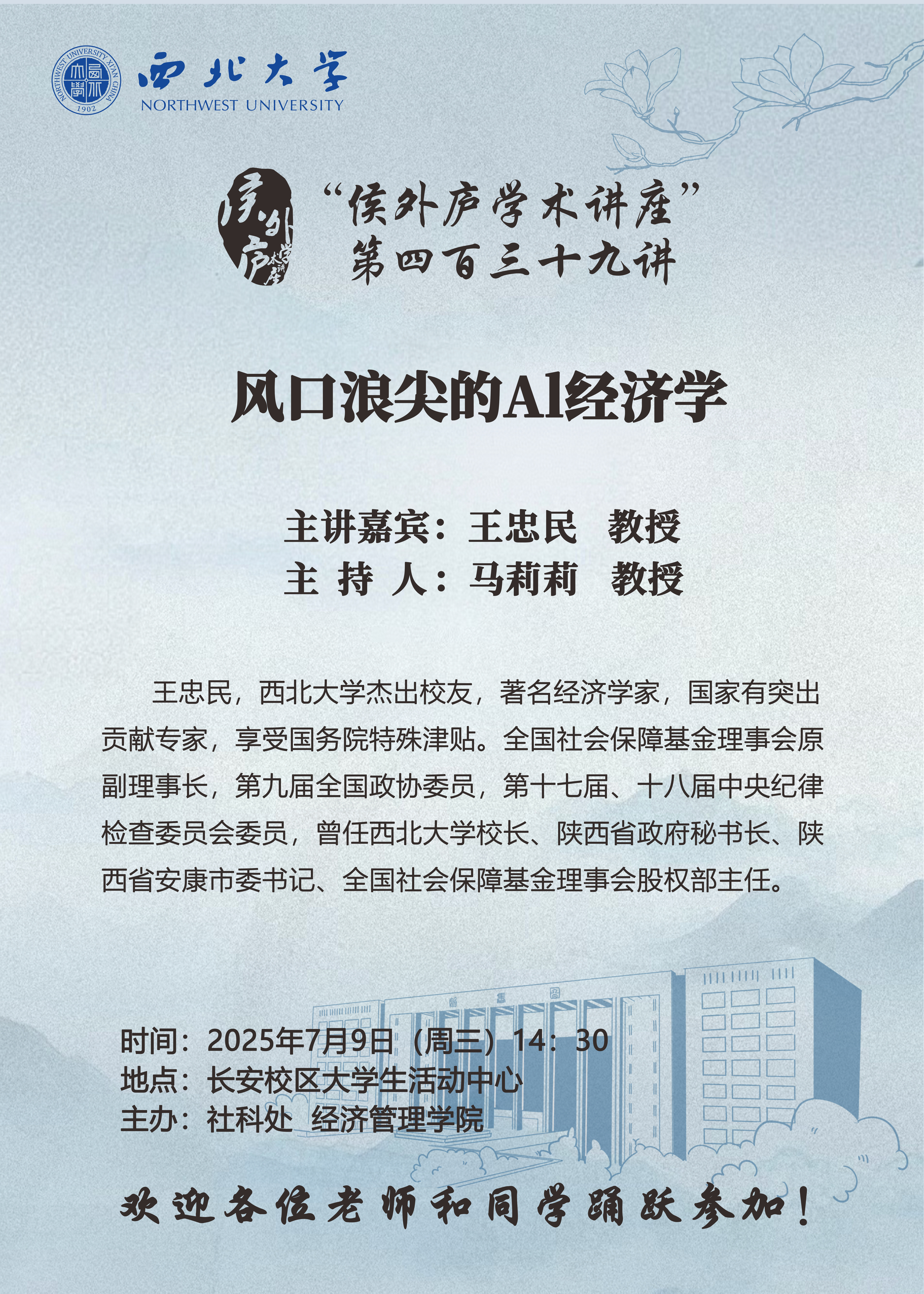 “侯外庐学术讲座”第四百三十九讲:风口浪尖的AI经济学