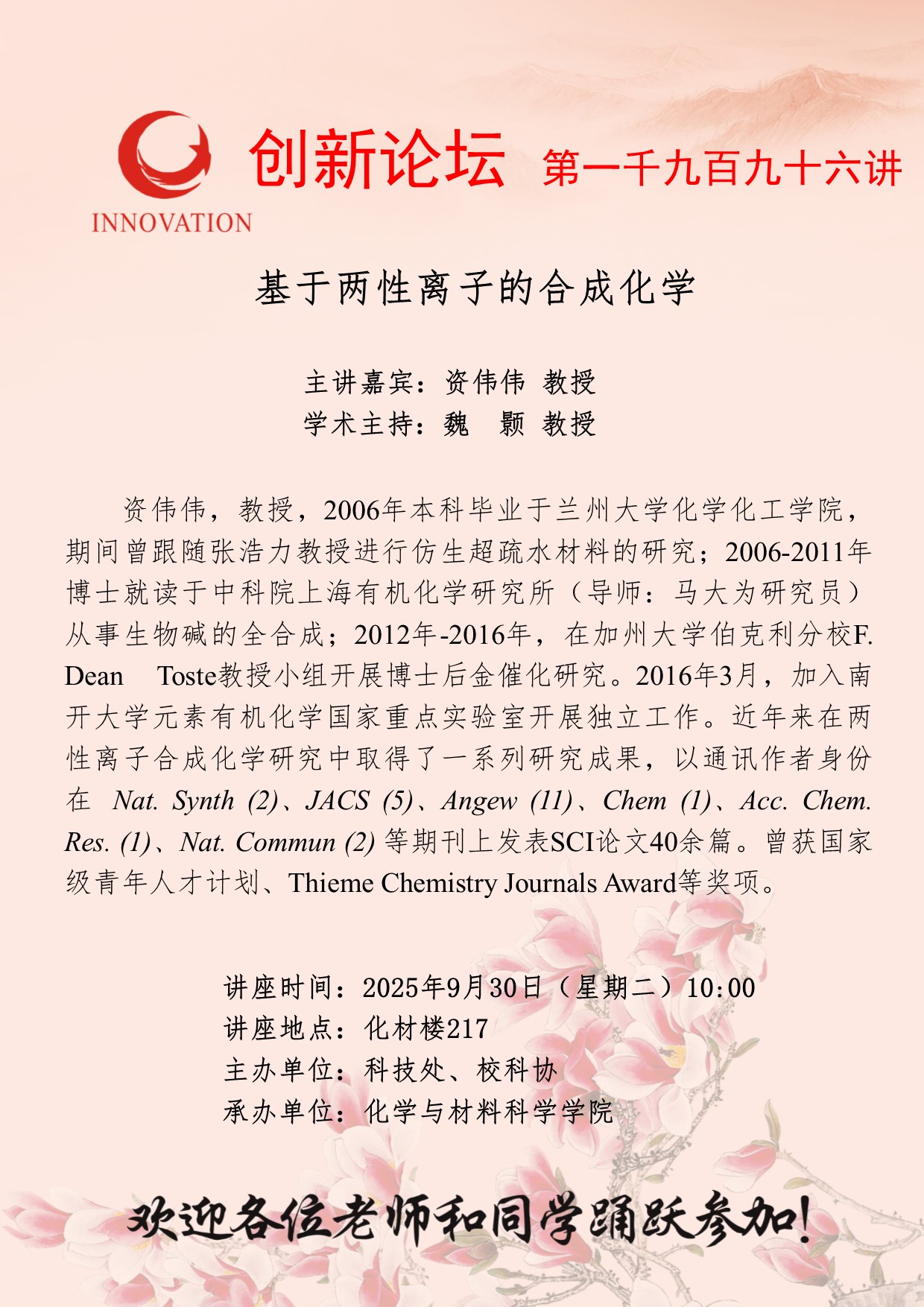星空app官网创新论坛第一千九百九十六讲: 基于两性离子的合成化学