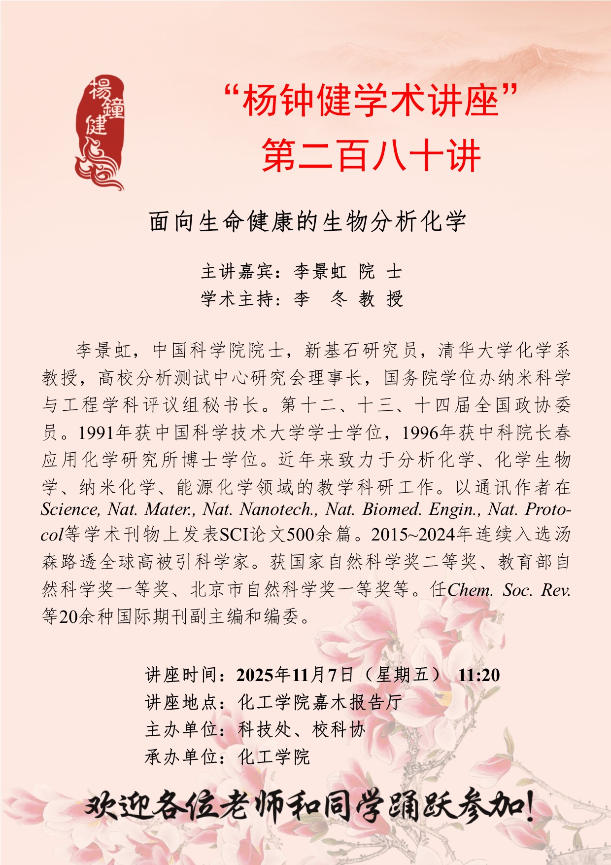“杨钟健学术讲座”第二百八十讲:面向生命健康的生物分析化学