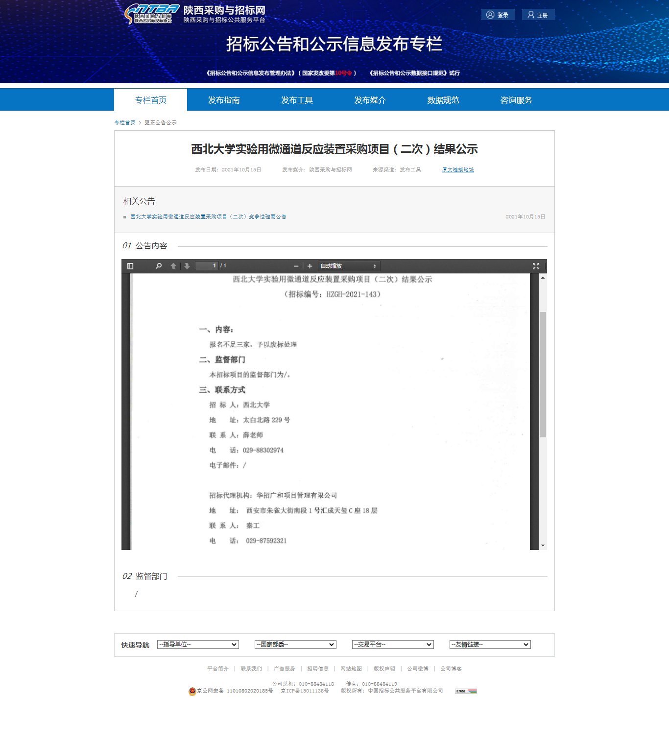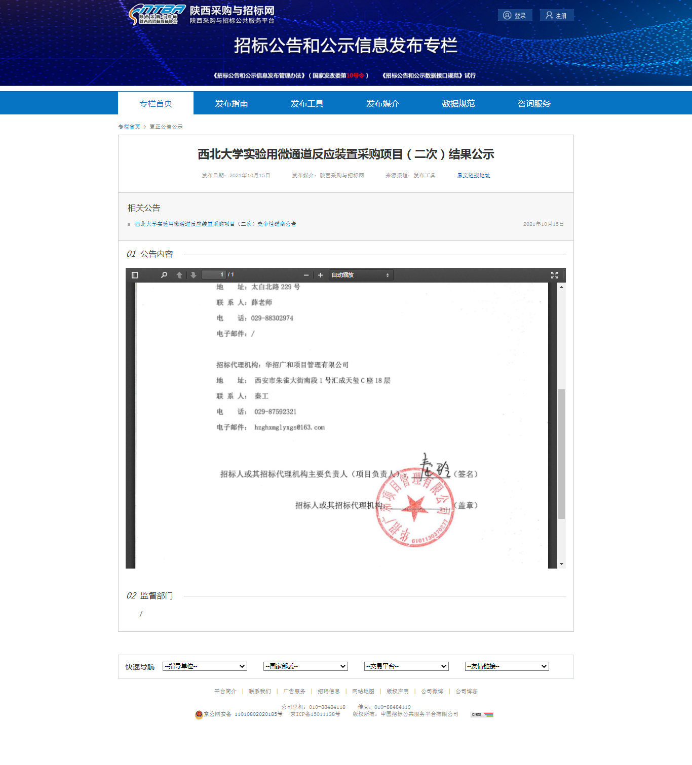 星空app官网实验用微通道反应装置采购项目(二次)结果公示 作者: 编辑:采购与招标办公室 时间:2021-10-15 原公告地址:http://bulletin.sntba.com/changeBulletin/2021-10-15/353247.html