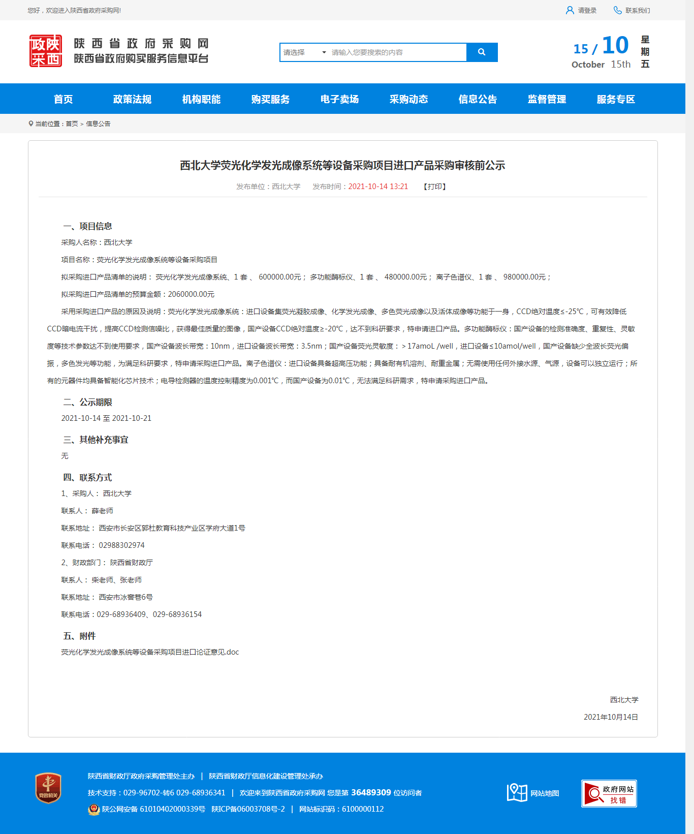 星空app官网荧光化学发光成像系统等设备采购项目进口产品采购审核前公示 作者: 编辑:采购与招标办公室 时间:2021-10-15 原公告地址:http://www.ccgp-shaanxi.gov.cn/notice/noticeDetail.do?noticeguid=8a85be327c20d508017c7d292ccd6e1a