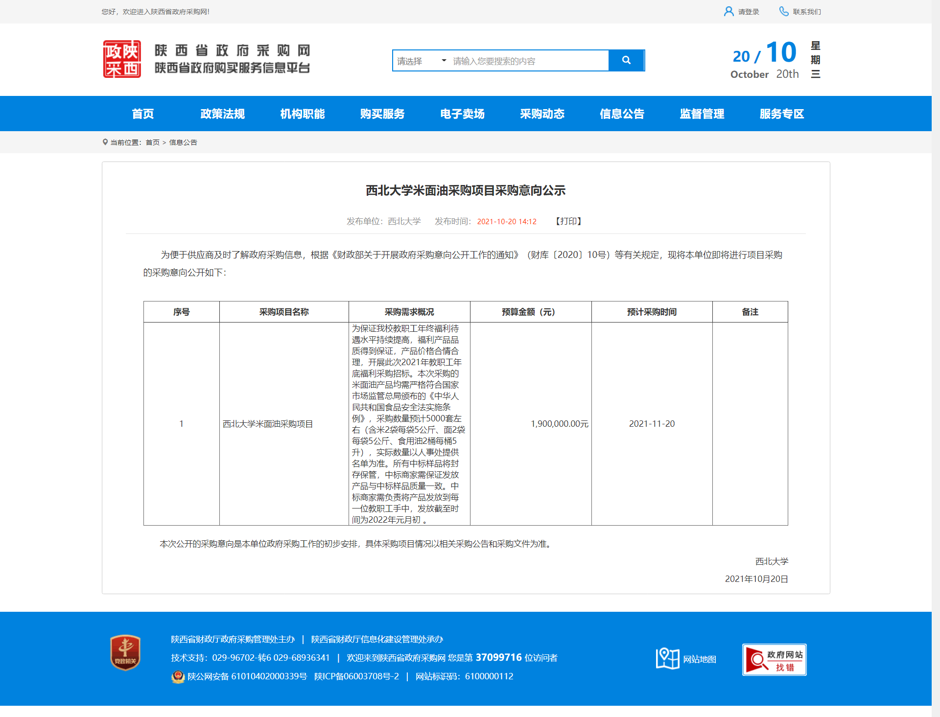 星空app官网米面油采购项目采购意向公示 作者: 编辑:采购与招标办公室 时间:2021-10-20 原公告地址:http://www.ccgp-shaanxi.gov.cn/notice/noticeDetail.do?noticeguid=8a85be337c20d0b4017c9c4e47dd0a64