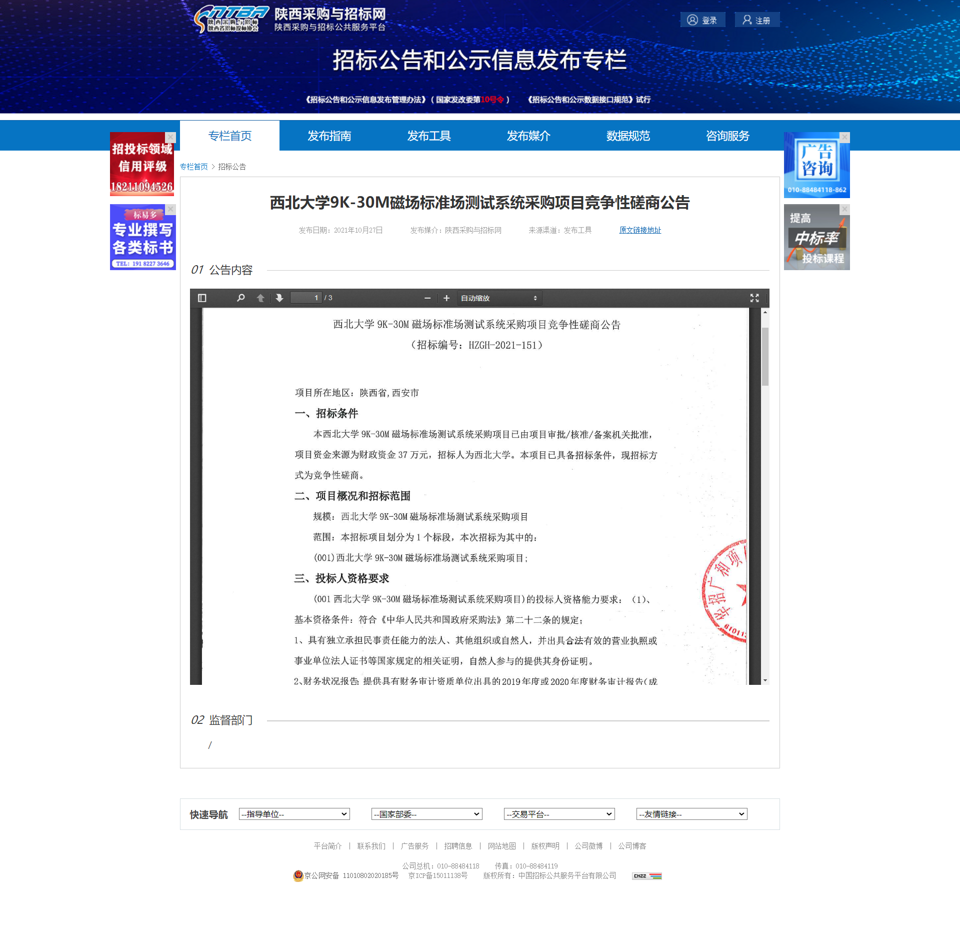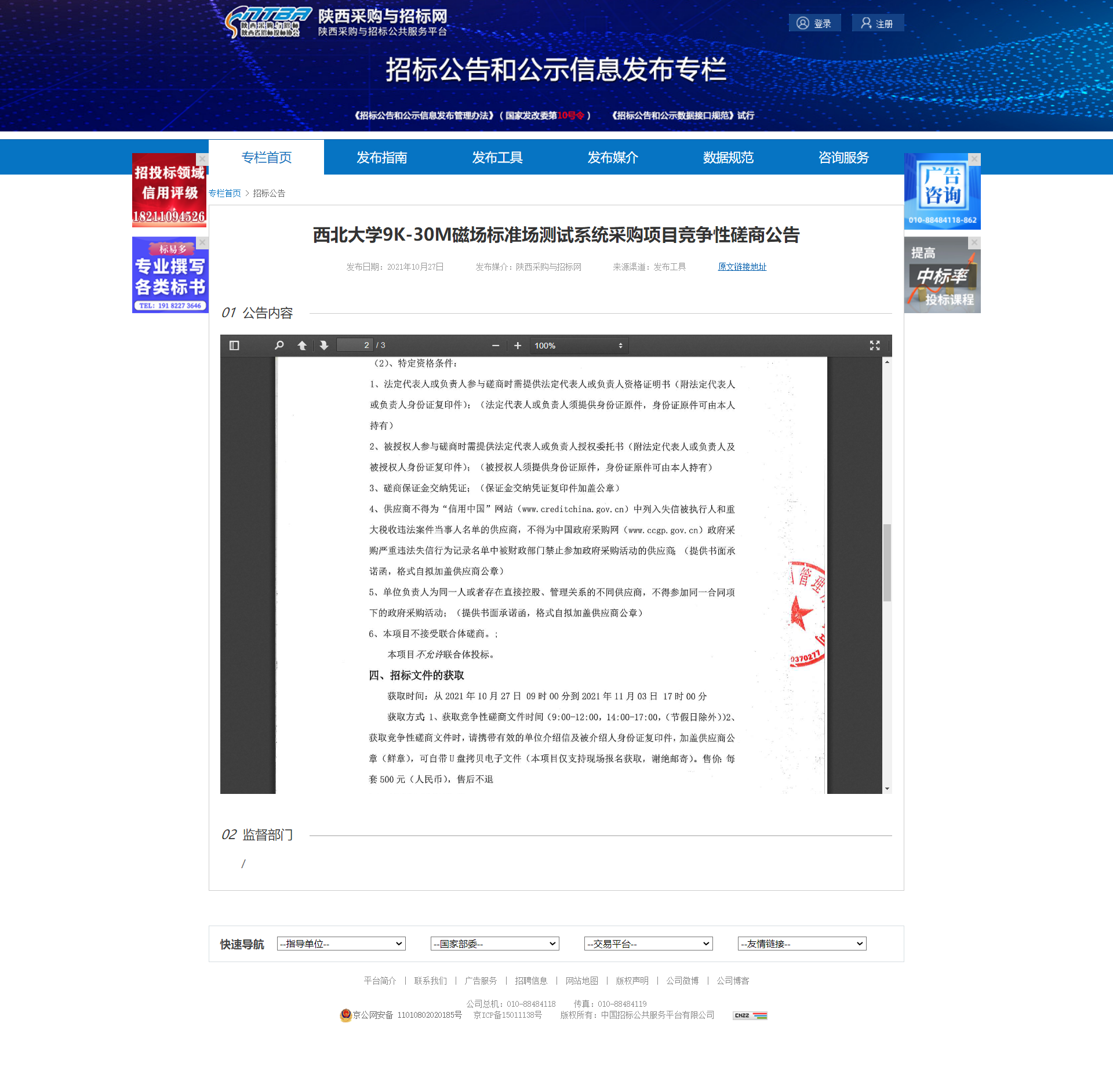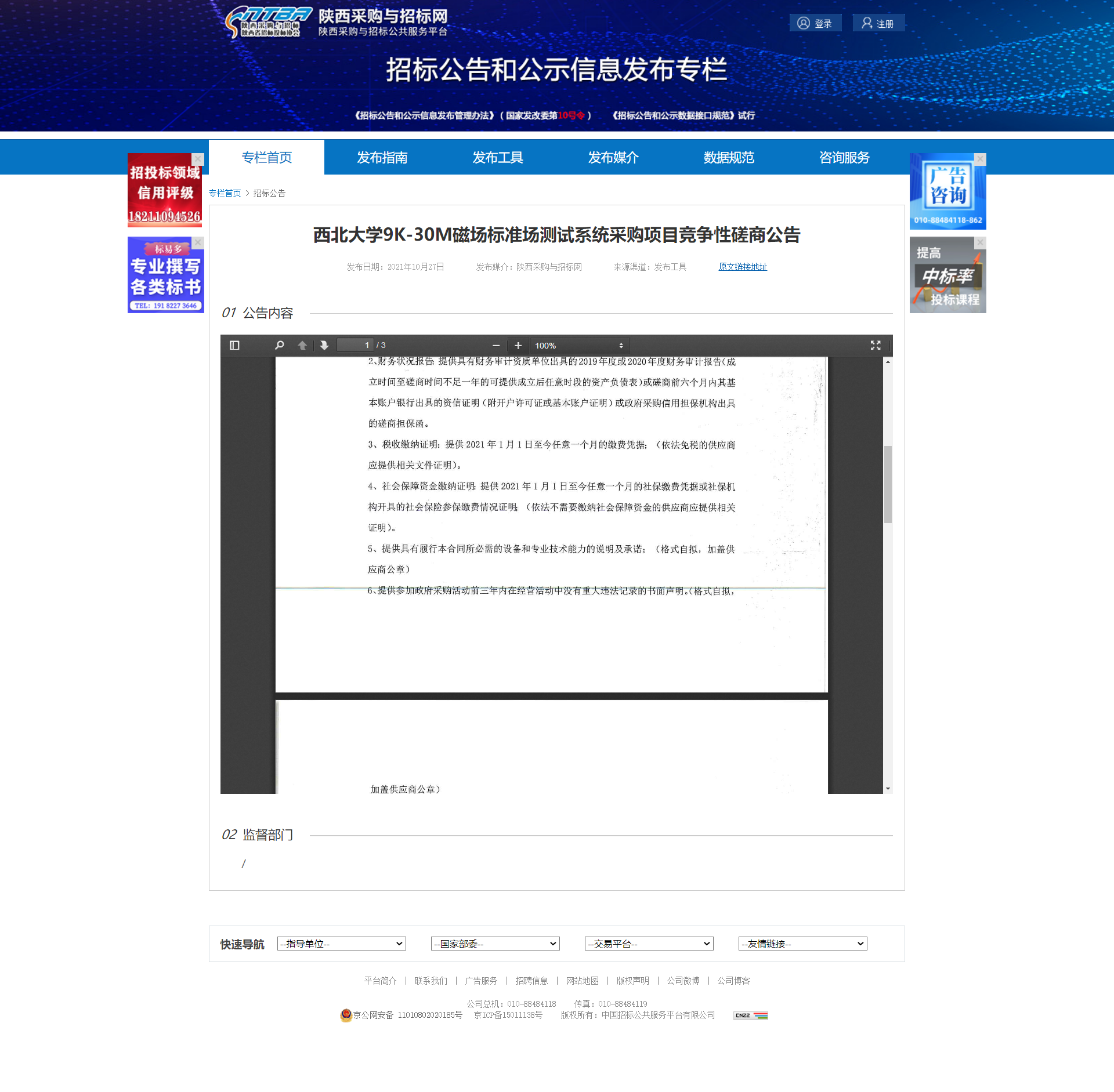 星空app官网9K-30M磁场标准场测试系统采购项目竞争性磋商公告 作者: 编辑:薛利娟 时间:2021-10-27 原公告地址:http://bulletin.sntba.com/biddingBulletin/2021-10-27/357751.html