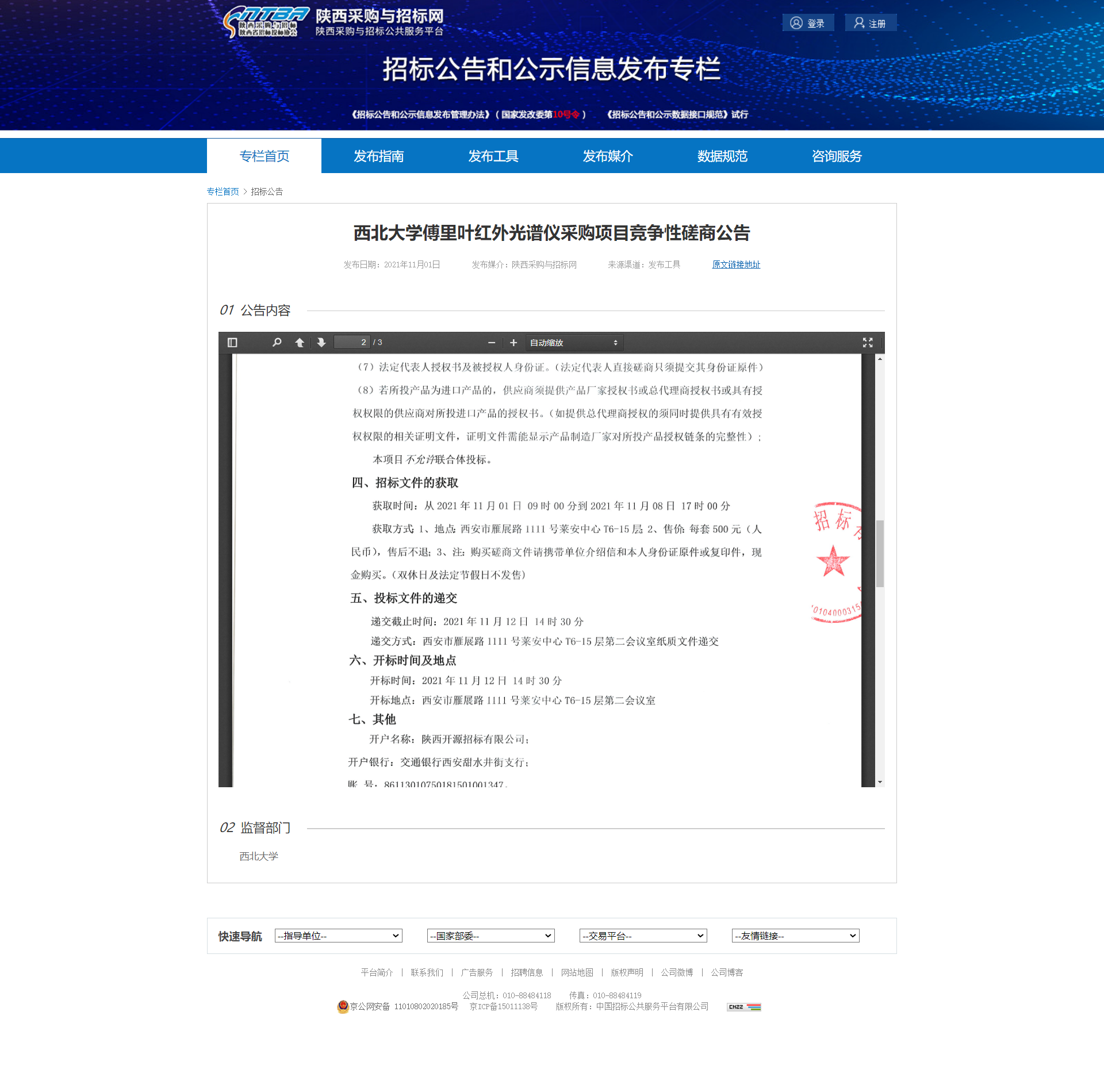 星空app官网傅里叶红外光谱仪采购项目竞争性磋商公告 作者: 编辑:薛利娟 时间:2021-11-01 原公告地址:http://bulletin.sntba.com/biddingBulletin/2021-11-01/359204.html