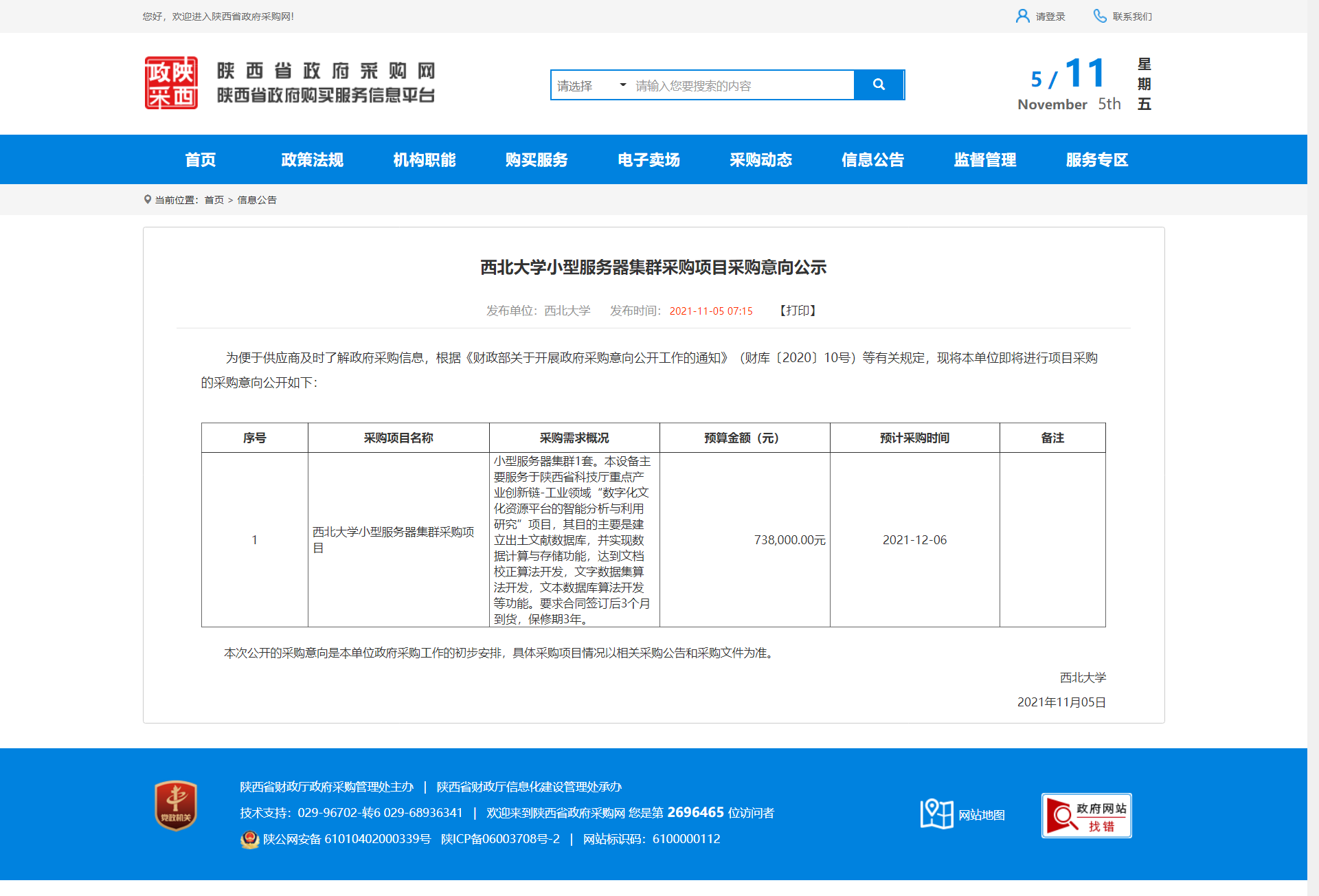 星空app官网小型服务器集群采购项目采购意向公示 作者: 编辑:薛利娟 时间:2021-11-05 原公告地址:http://ccgp-shaanxi.gov.cn/notice/noticeDetail.do?noticeguid=8a85be337cc69df5017ced3a8b59065e