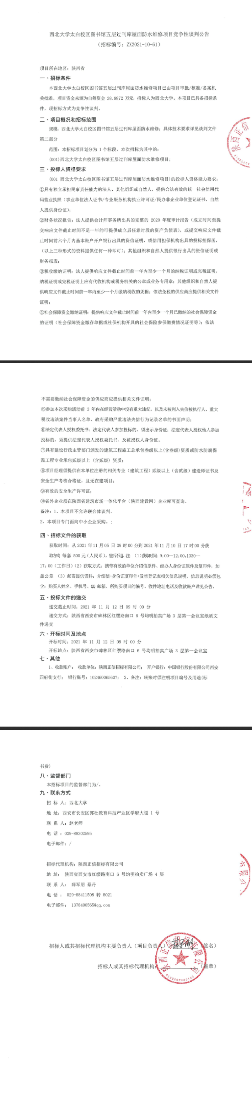 星空app官网太白校区图书馆五层过刊库屋面防水维修项目竞争性谈判公告