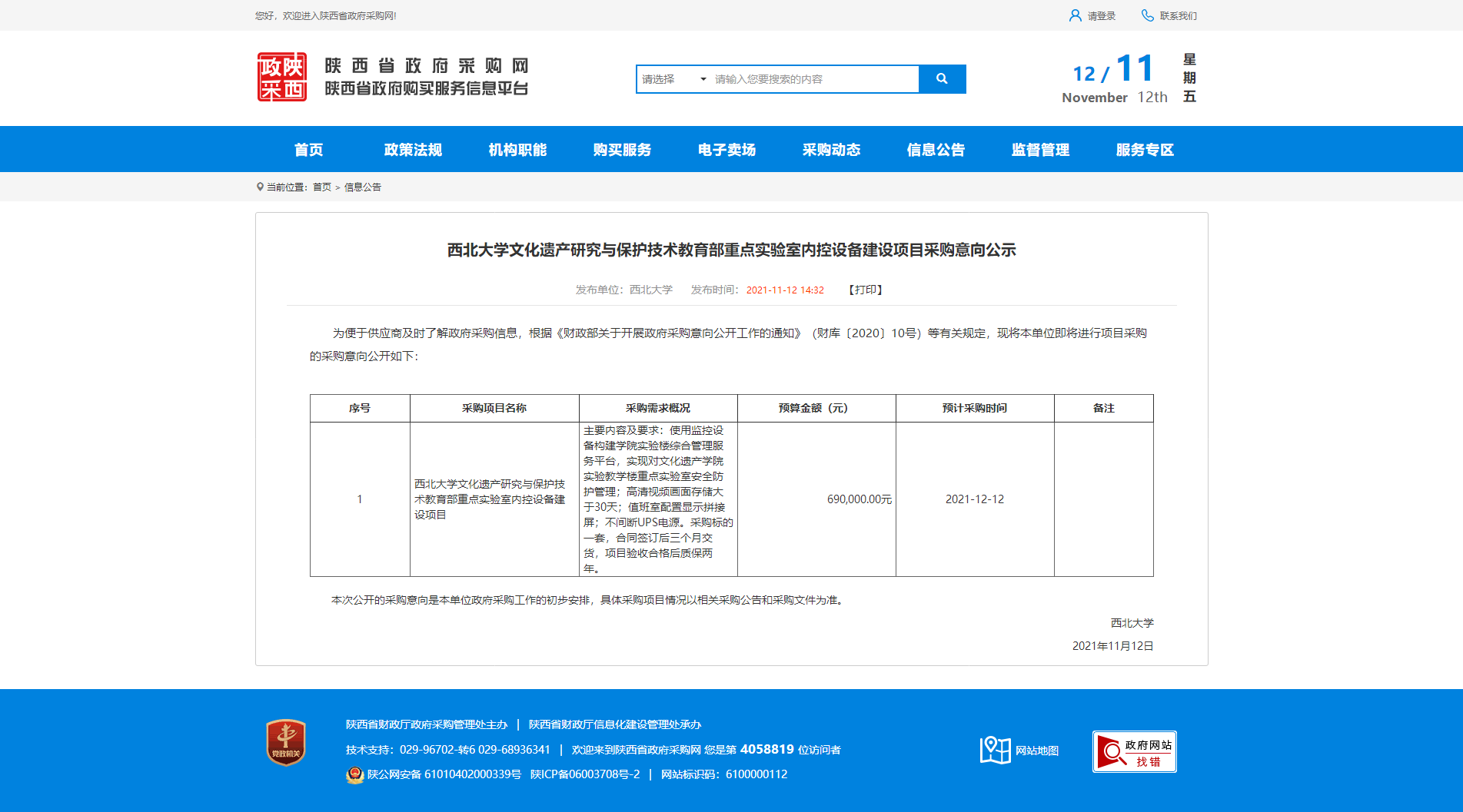 星空app官网文化遗产研究与保护技术教育部重点实验室内控设备建设项目采购意向公示