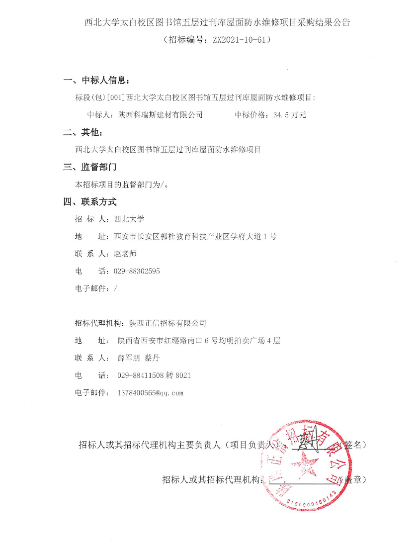 星空app官网太白校区图书馆五层过刊库屋面防水维修项目采购结果公告