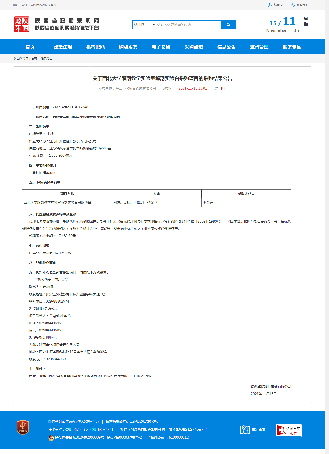 关于星空app官网解剖教学实验室解剖实验台采购项目的采购结果公告 作者: 编辑:薛利娟 时间:2021-11-15 原公告网址:http://www.ccgp-shaanxi.gov.cn/notice/noticeDetail.do?noticeguid=8a85be347cefc0a5017d2265933b409c