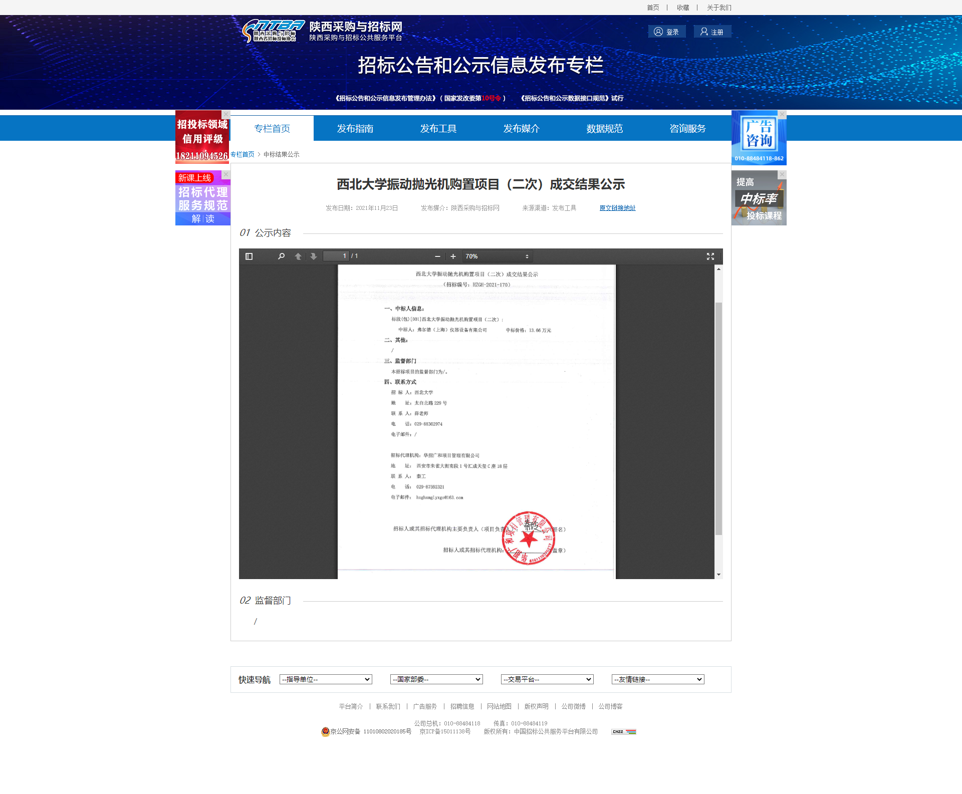 星空app官网振动抛光机购置项目(二次)成交结果公示 作者: 编辑:薛利娟 时间:2021-11-24 原公告网址:http://bulletin.sntba.com/resultBulletin/2021-11-23/367274.html