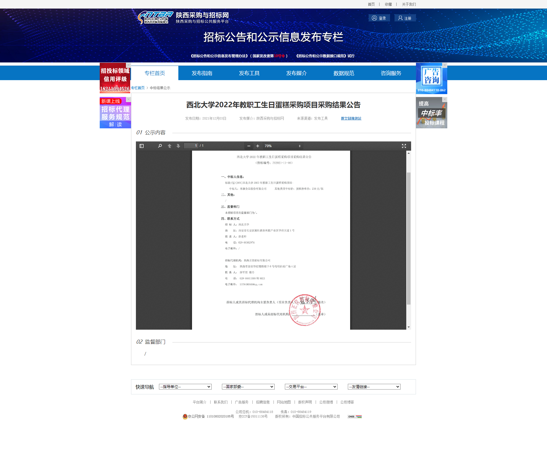 星空app官网2022年教职工生日蛋糕采购项目采购结果公告 作者: 编辑:薛利娟 时间:2021-12-06 原公告网址:http://bulletin.sntba.com/resultBulletin/2021-12-03/371639.html