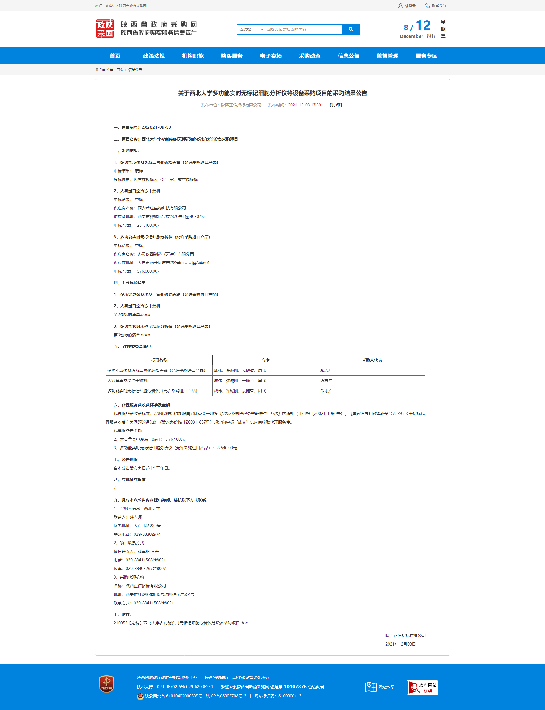 关于星空app官网多功能实时无标记细胞分析仪等设备采购项目的采购结果公告