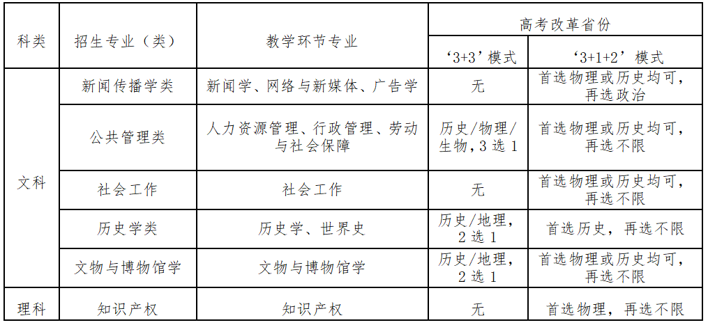 注:“招生专业(类)”为高考志愿填报及录取专业,“教学环节专业”为对应的入学后可就读专业。高考志愿填报及确定录取专业时按“招生专业(类)”进行。入学后,学生须按院系安排确定具体的“教学环节专业”。具体专业名称以教育部批复的当年招生专业为准。