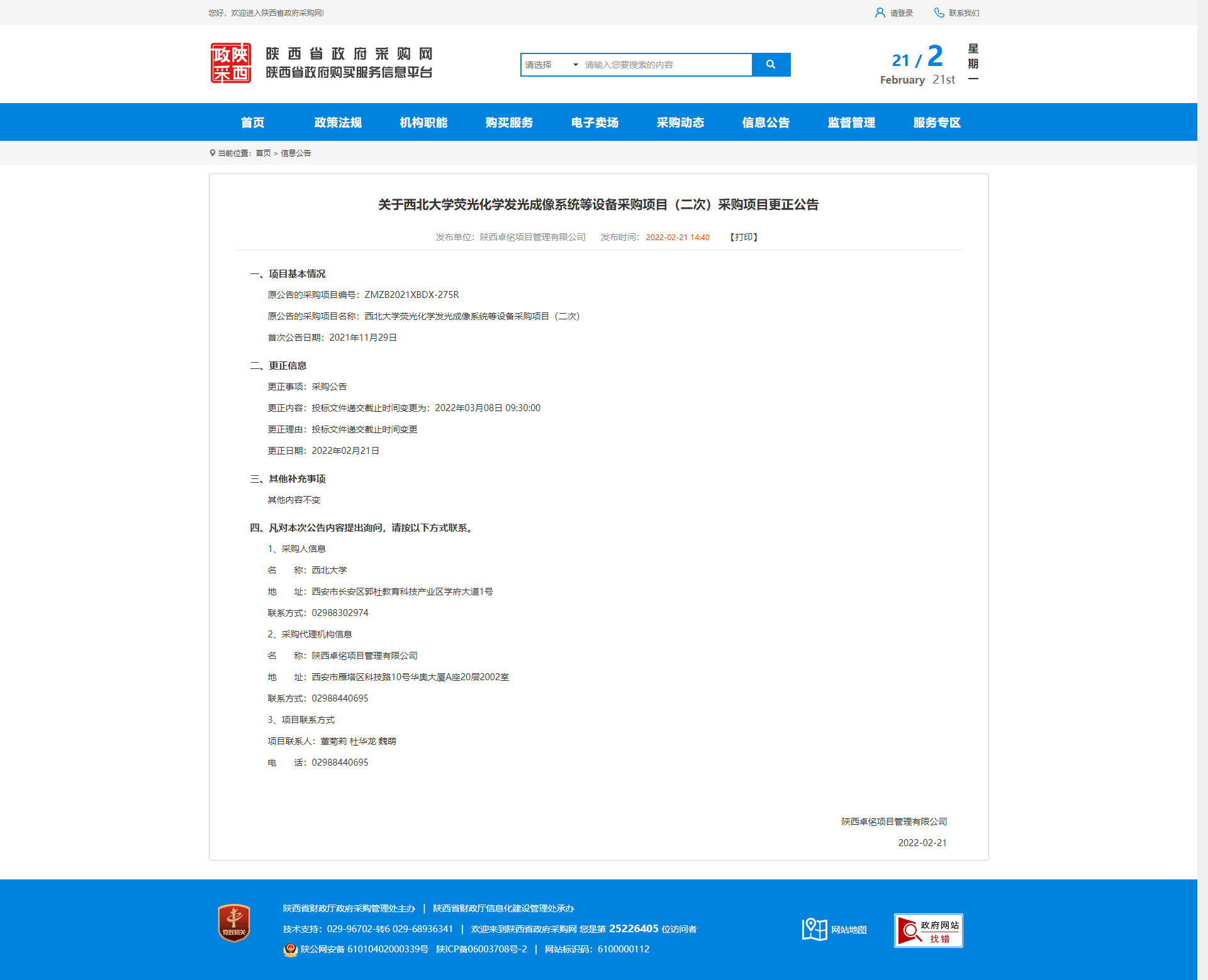 关于星空app官网荧光化学发光成像系统等设备采购项目(二次)采购项目更正公告 作者: 编辑:薛利娟 时间:2022-02-21 原公告链接:http://www.ccgp-shaanxi.gov.cn/notice/noticeDetail.do?noticeguid=8a85be317ee7907d017f1aa113f346e8