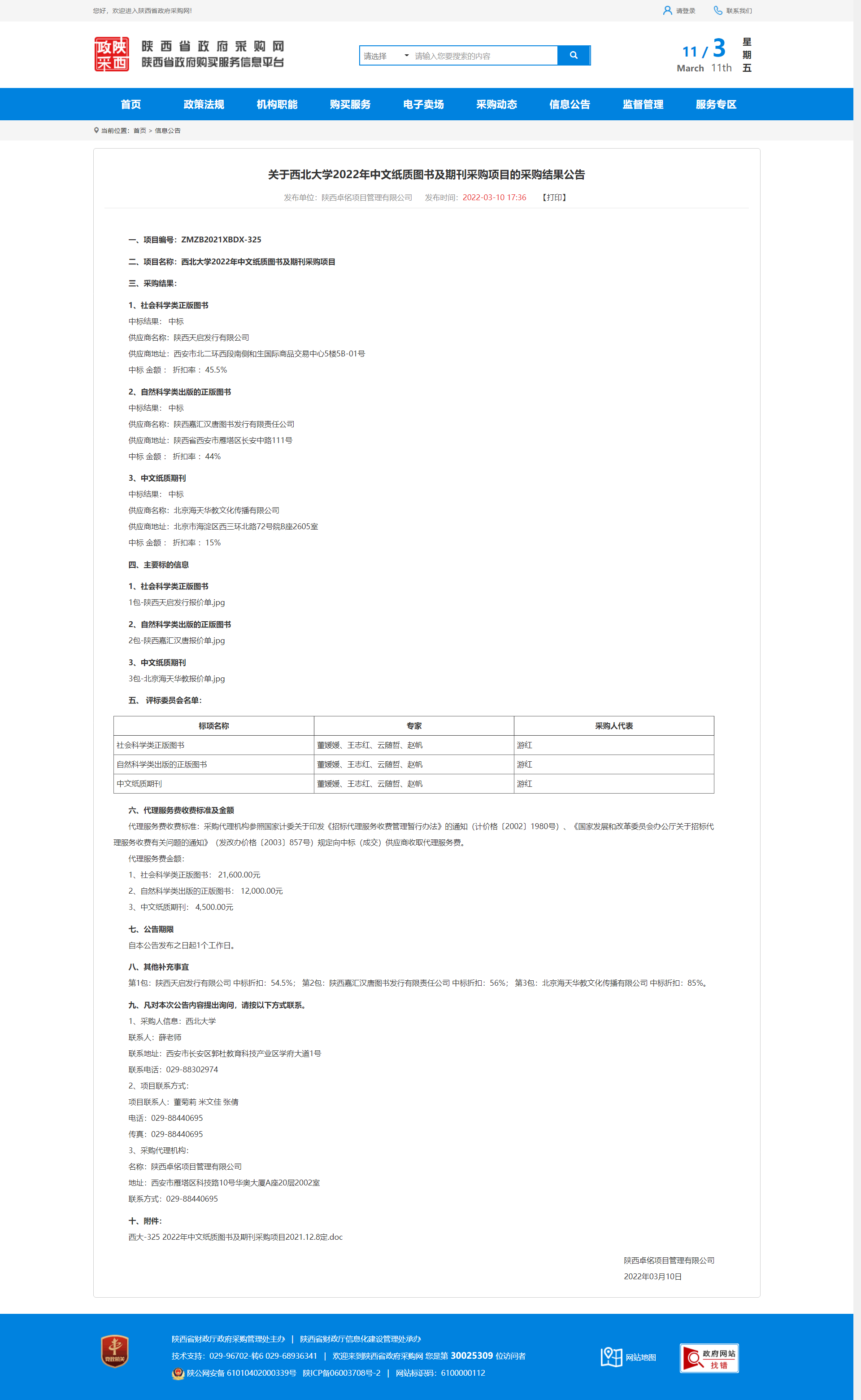 关于星空app官网2022年中文纸质图书及期刊采购项目的采购结果公告 作者: 编辑:薛利娟 时间:2022-03-11 原公告链接:http://www.ccgp-shaanxi.gov.cn/notice/noticeDetail.do?noticeguid=8a85be327f3fe30d017f73289eba45db