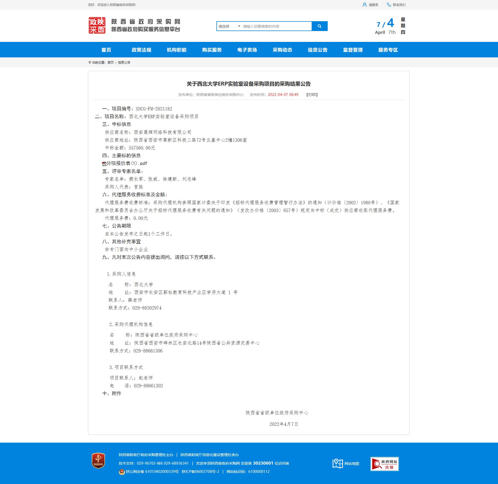 关于星空app官网ERP实验室设备采购项目的采购结果公告 作者: 编辑:薛利娟 时间:2022-04-07 原公告链接:http://113.200.80.230/notice/noticeDetail.do?noticeguid=8a85be387f91f0bf0180019dab1c001f