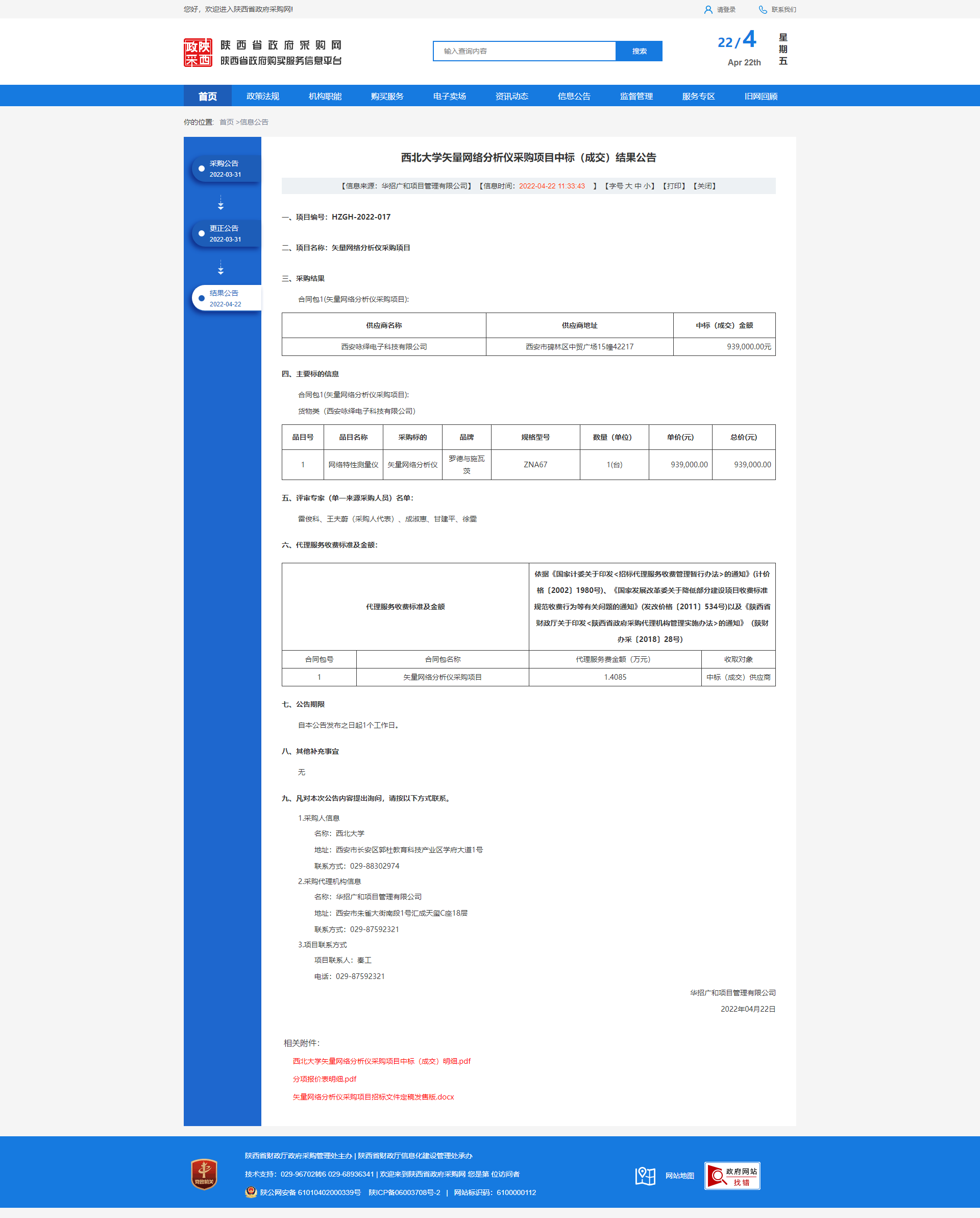 星空app官网矢量网络分析仪采购项目中标(成交)结果公告 作者: 编辑:薛利娟 时间:2022-04-22 原公告链接:http://www.ccgp-shaanxi.gov.cn/freecms/site/shaanxi/ggxx/info/2022/8a69c3a2803c3c1c01804f4570841746.html?noticeType=001021¬iceId=9725019f-c1ed-11ec-9a8e-08c0eb20c666