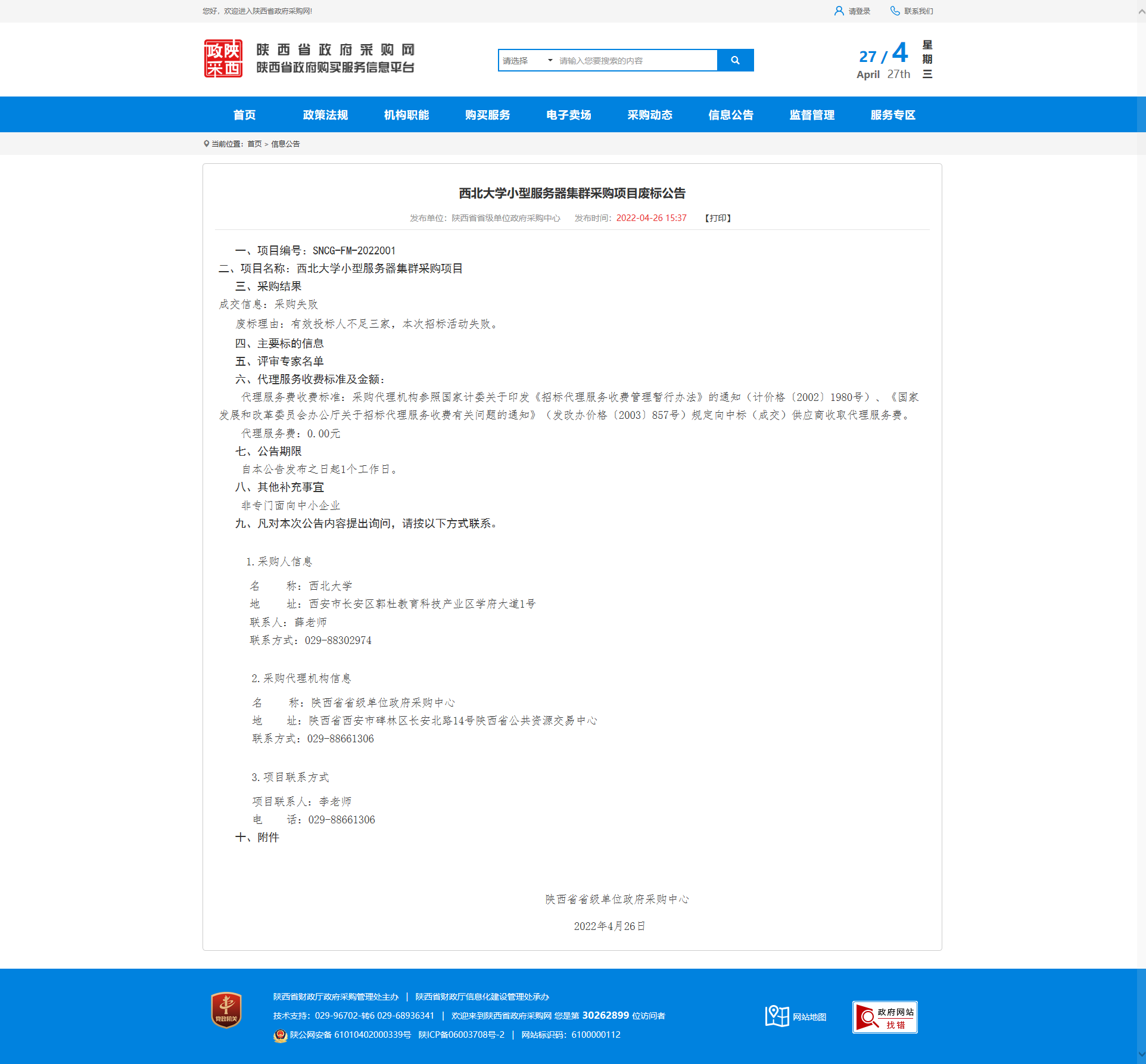 星空app官网小型服务器集群采购项目废标公告 作者: 编辑:薛利娟 时间:2022-04-27 原公告链接:http://113.200.80.230/notice/noticeDetail.do?noticeguid=8a85be387f91f0bf0180654648f60035