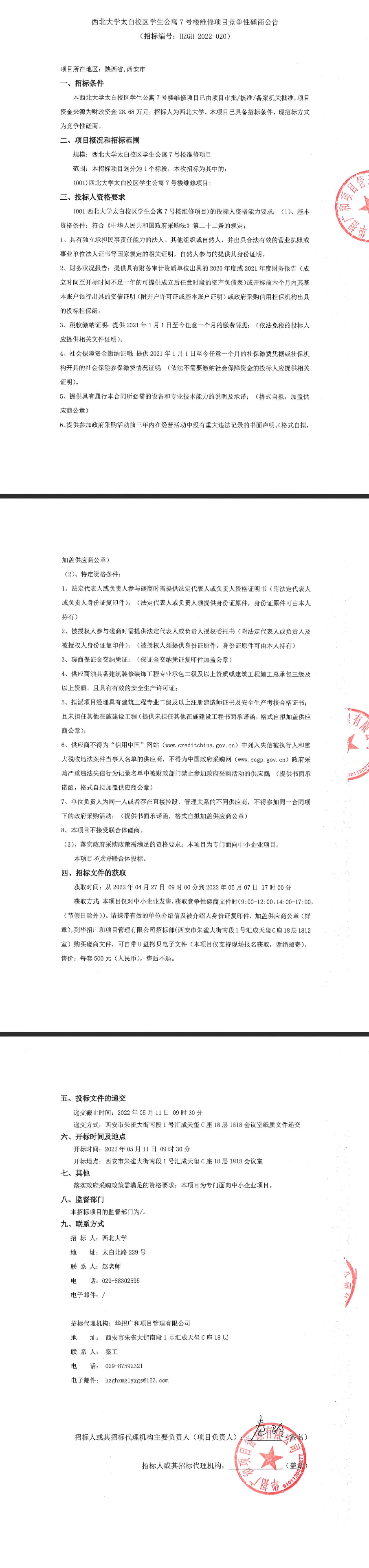 星空app官网太白校区学生公寓7号楼维修项目竞争性磋商公告