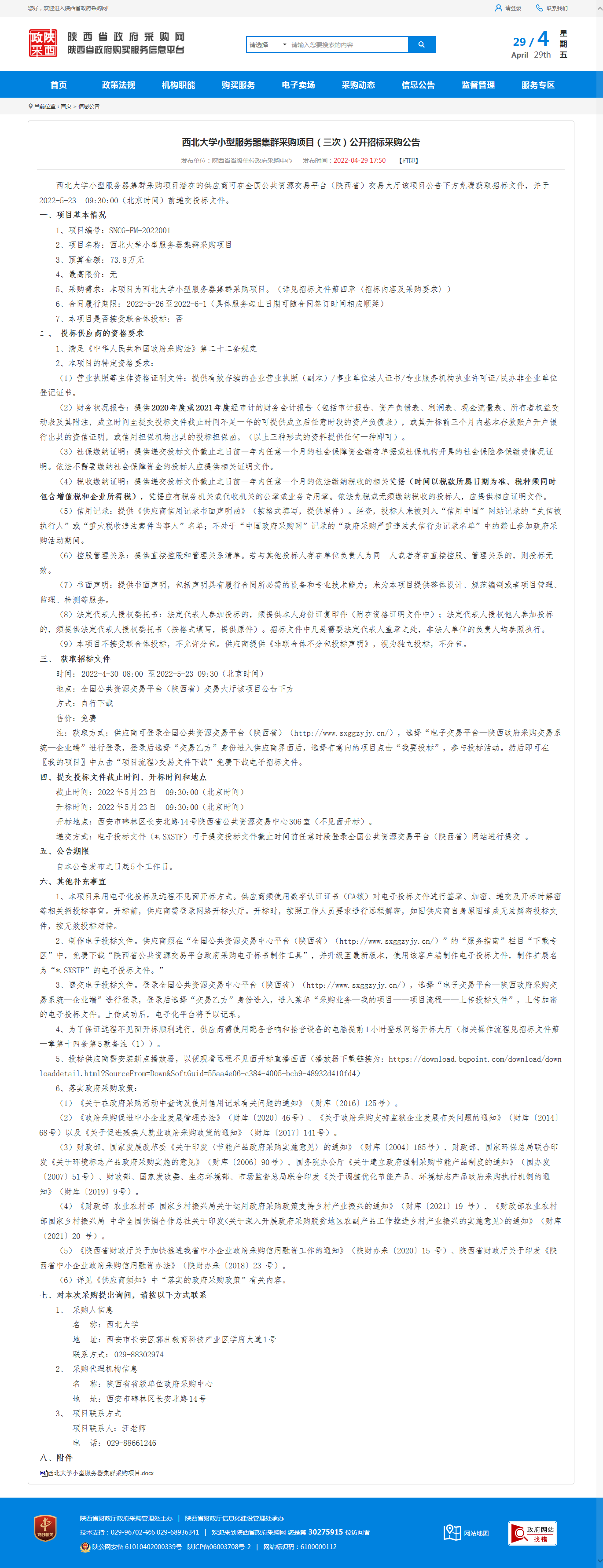 星空app官网小型服务器集群采购项目(三次)公开招标采购公告 作者: 编辑:薛利娟 时间:2022-04-29 原公告链接:http://113.200.80.230/notice/noticeDetail.do?noticeguid=8a85be387f91f0bf018074b7b951003b
