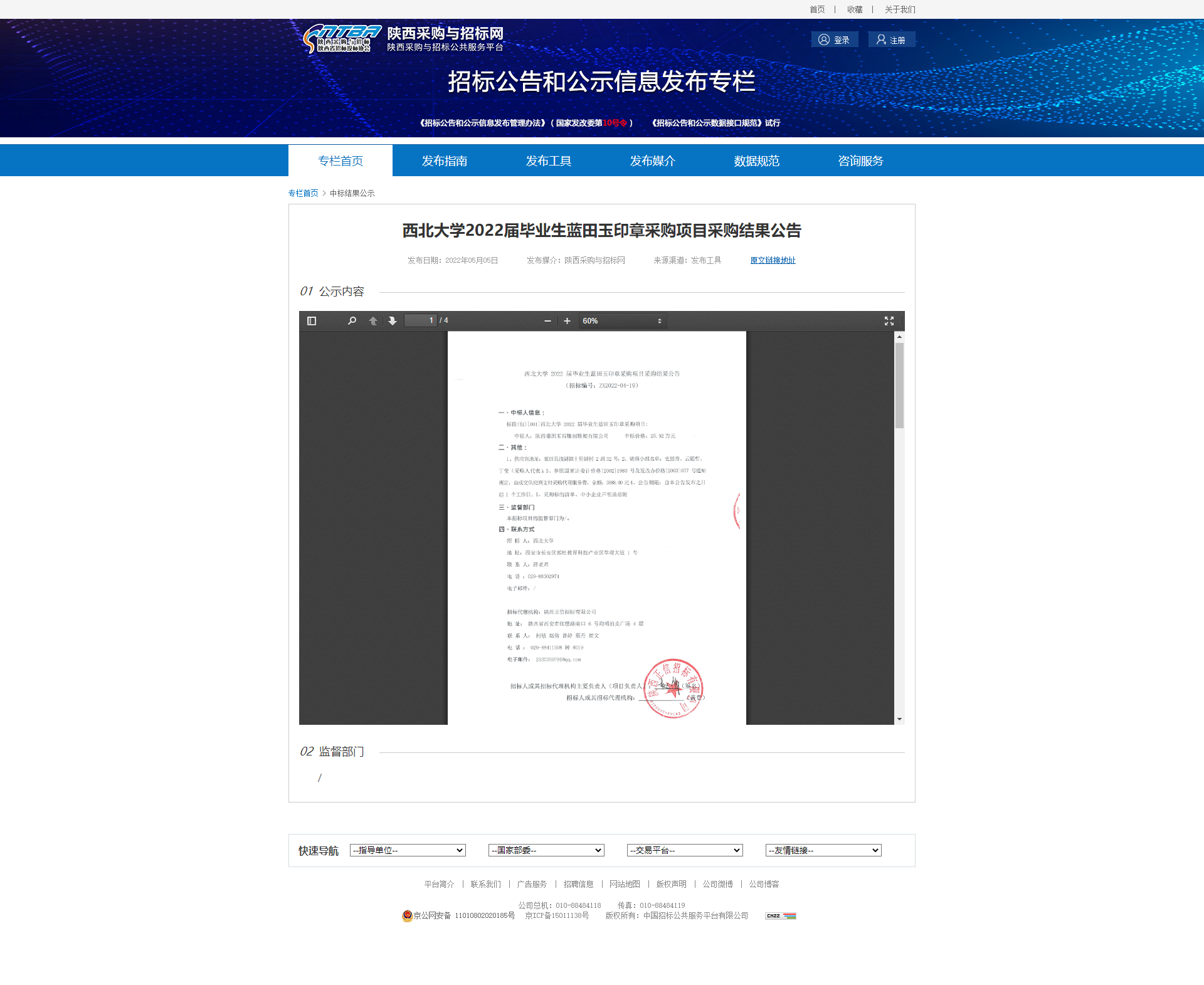星空app官网2022届毕业生蓝田玉印章采购项目采购结果公告 作者: 编辑:薛利娟 时间:2022-05-05 原公告链接:http://bulletin.sntba.com/resultBulletin/2022-05-05/416048.html
