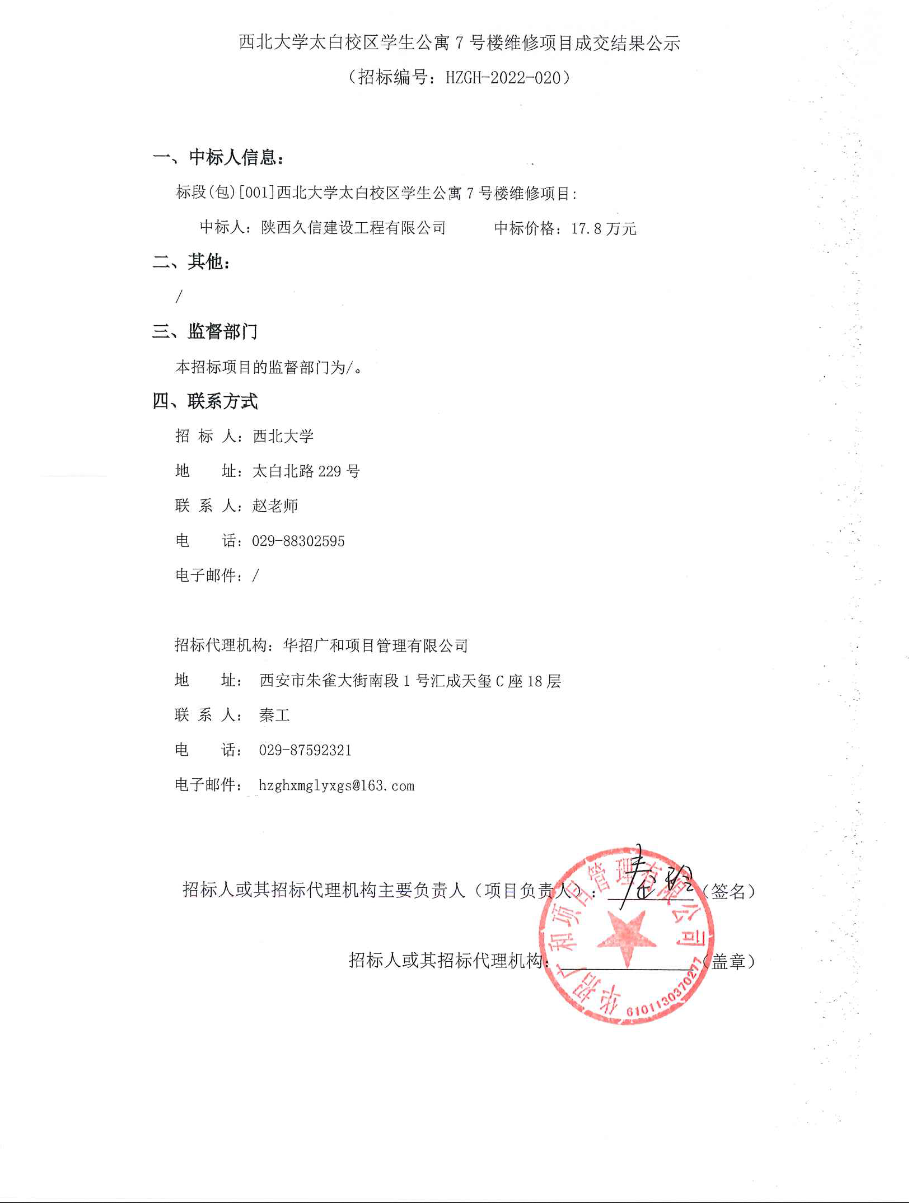 星空app官网太白校区学生公寓7号楼维修项目成交结果公示