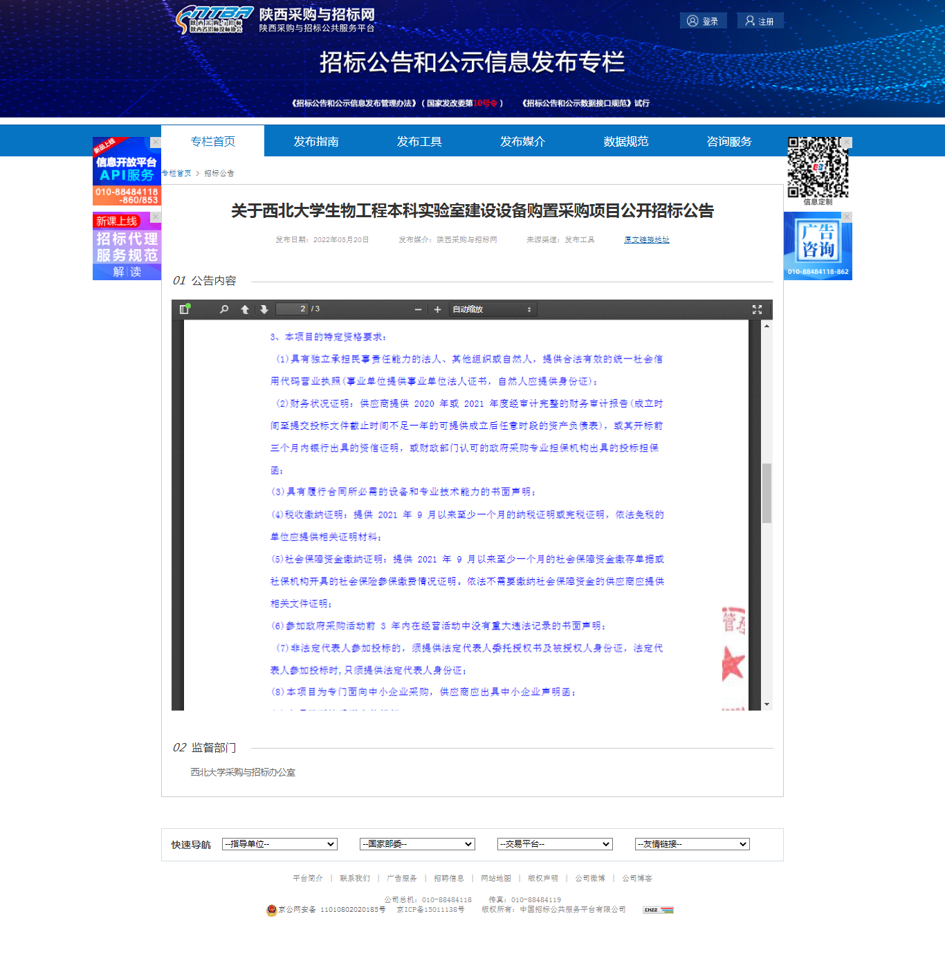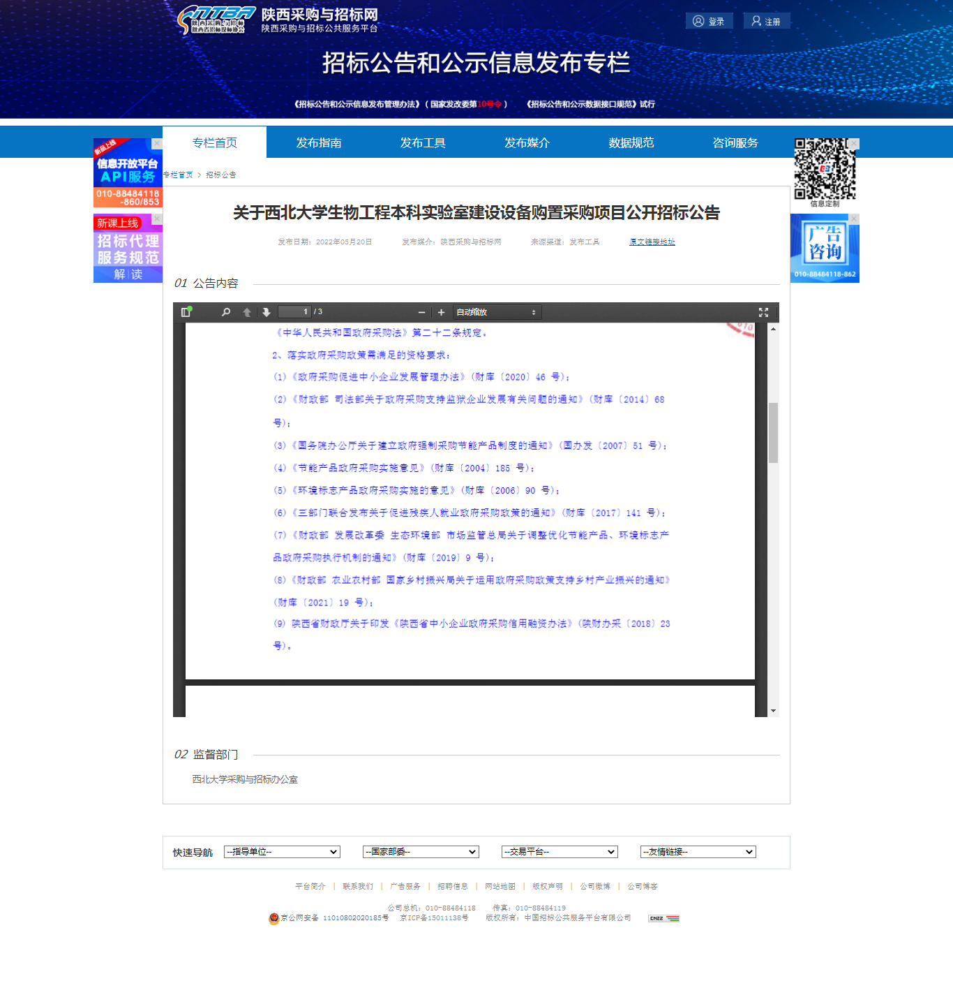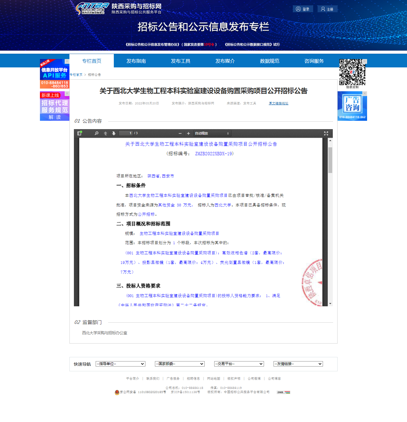 星空app官网生物工程本科实验室建设设备购置采购项目公开招标公告 作者: 编辑:薛利娟 时间:2022-05-20 原公告链接:http://bulletin.sntba.com/biddingBulletin/2022-05-20/423538.html