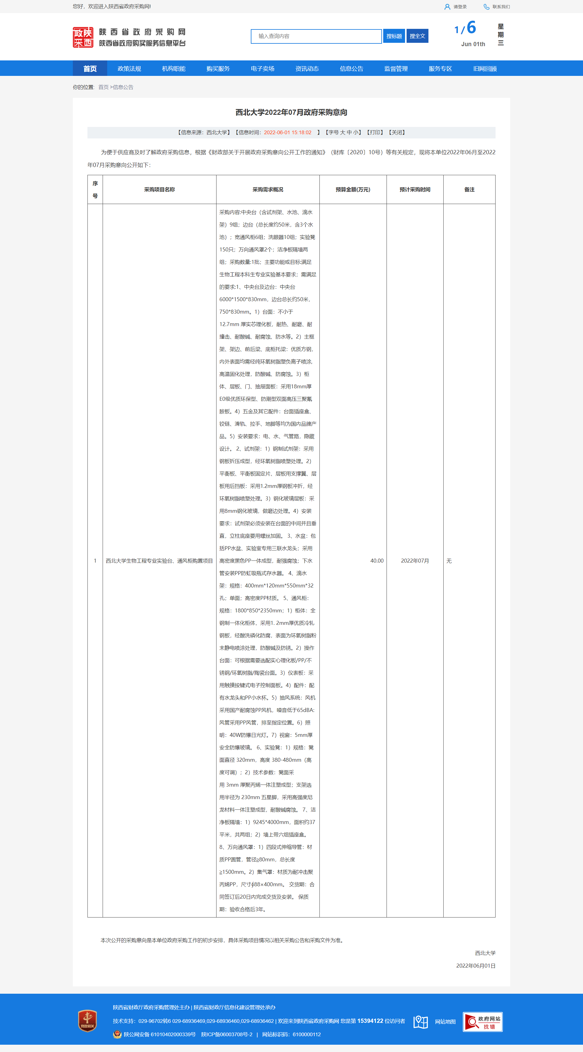 星空app官网2022年07月政府采购意向 作者: 编辑:薛利娟 时间:2022-06-01 原公告链接:http://www.ccgp-shaanxi.gov.cn/freecms/site/shaanxi/ggxx/info/2022/8a69c0e58118e62901811d4c9c3721fb.html?noticeType=59¬iceId=3bd64fb3-e17b-11ec-9a8e-08c0eb20c666