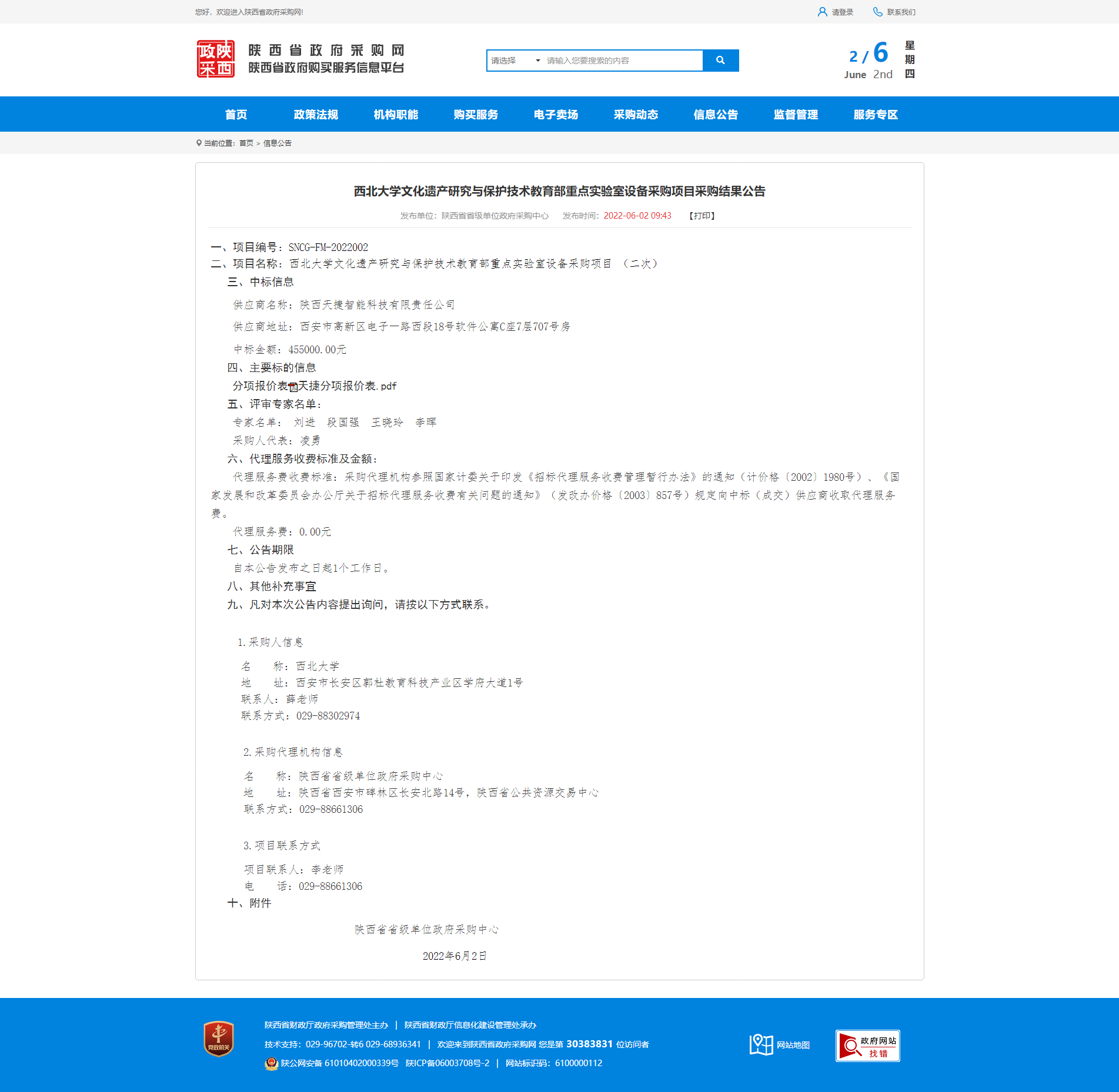星空app官网文化遗产研究与保护技术教育部重点实验室设备采购项目采购结果公告