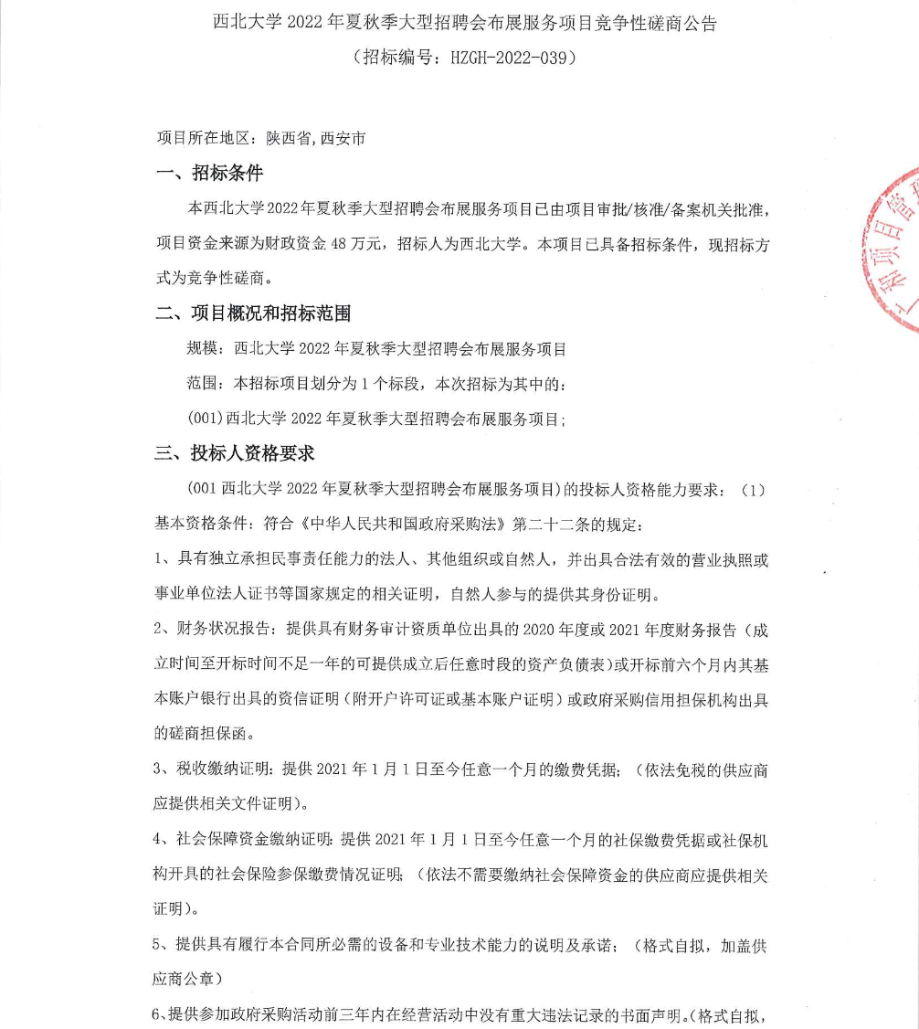 星空app官网2022年夏秋季大型招聘会布展服务项目竞争性磋商公告