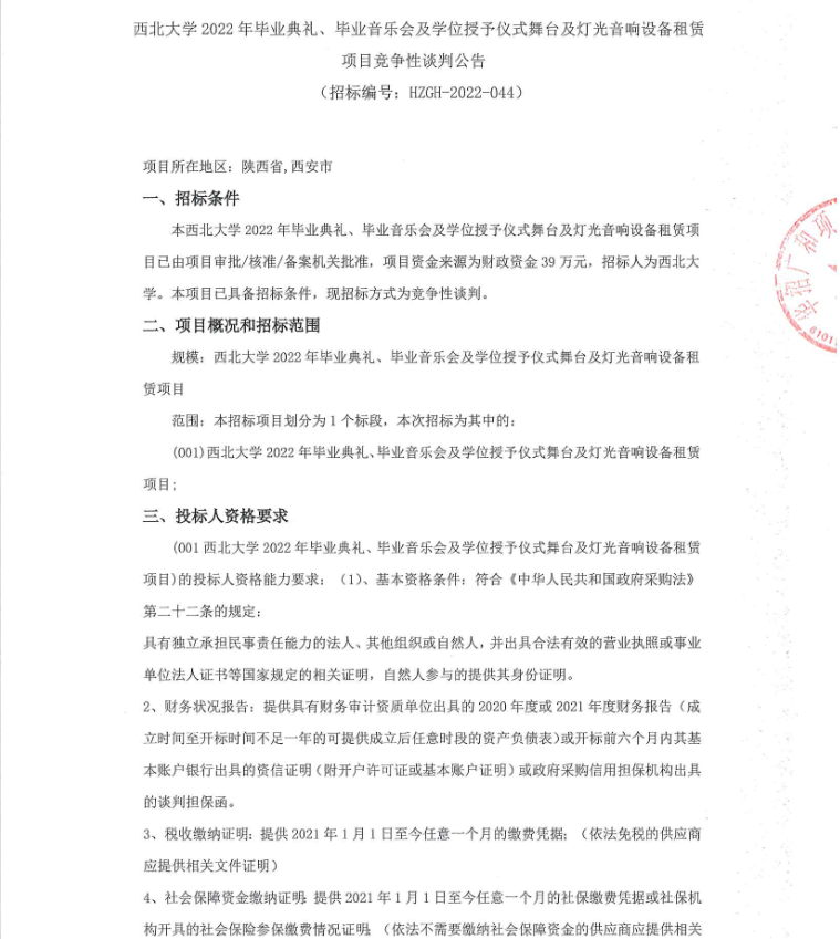 星空app官网2022年毕业典礼、毕业音乐会及学位授予仪式舞台及灯光音响设备租赁项目竞争性谈判公告