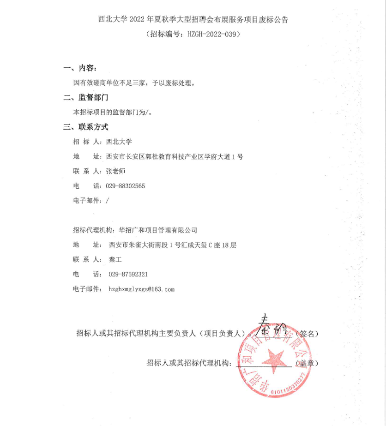 关于星空app官网2022年夏秋季大型招聘会布展服务项目废标公告