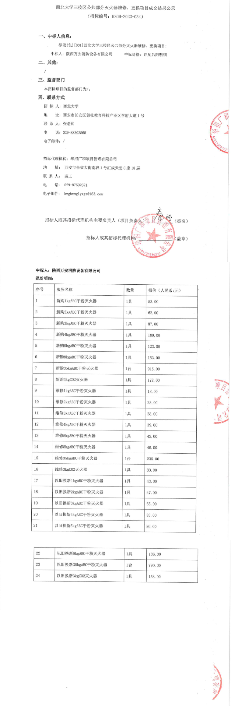 关于星空app官网三校区公共部分灭火器维修、更换项目成交结果公示