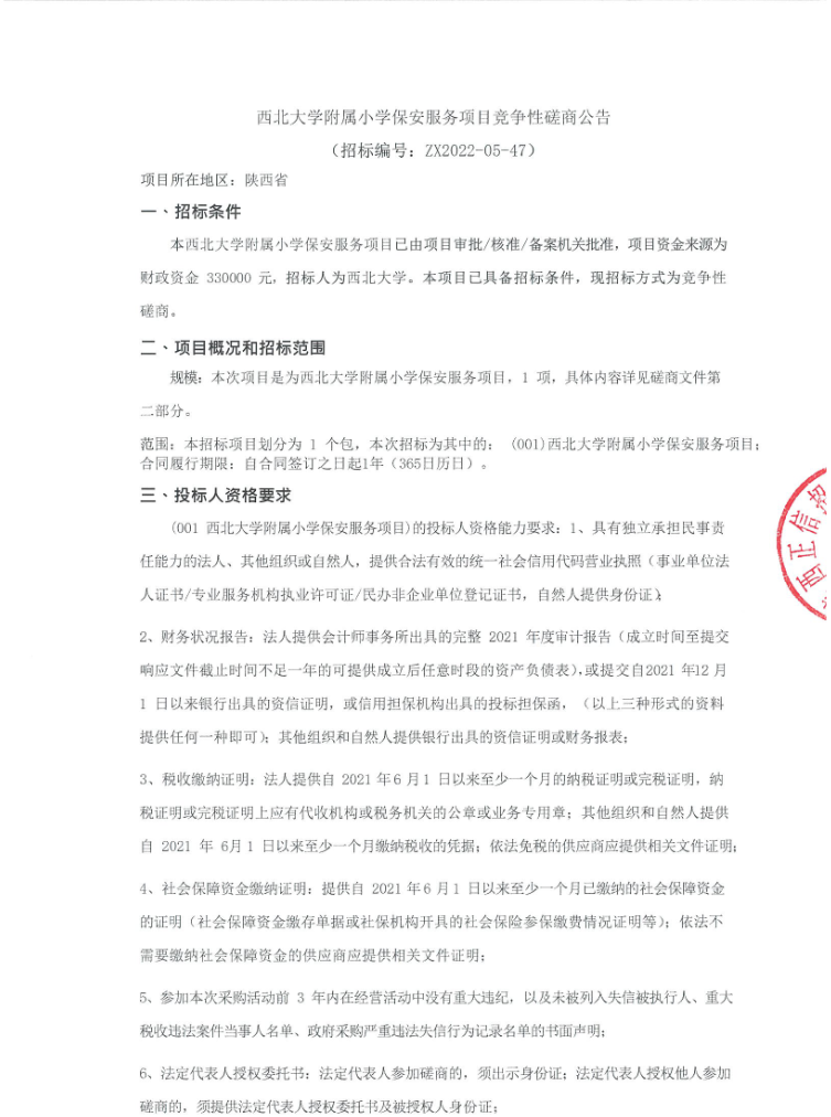 星空app官网附属小学保安服务项目竞争性磋商公告