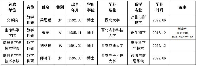 经用人单位推荐,人力资源部审查,学校教学督导及院系相关专家考核,星空app官网拟确定下列人员来校工作。本着公平、公正、公开的原则,现将本次拟选聘人员基本情况公示如下: