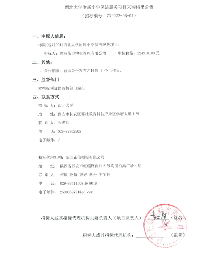 关于星空app官网附属小学保洁服务项目采购结果公告