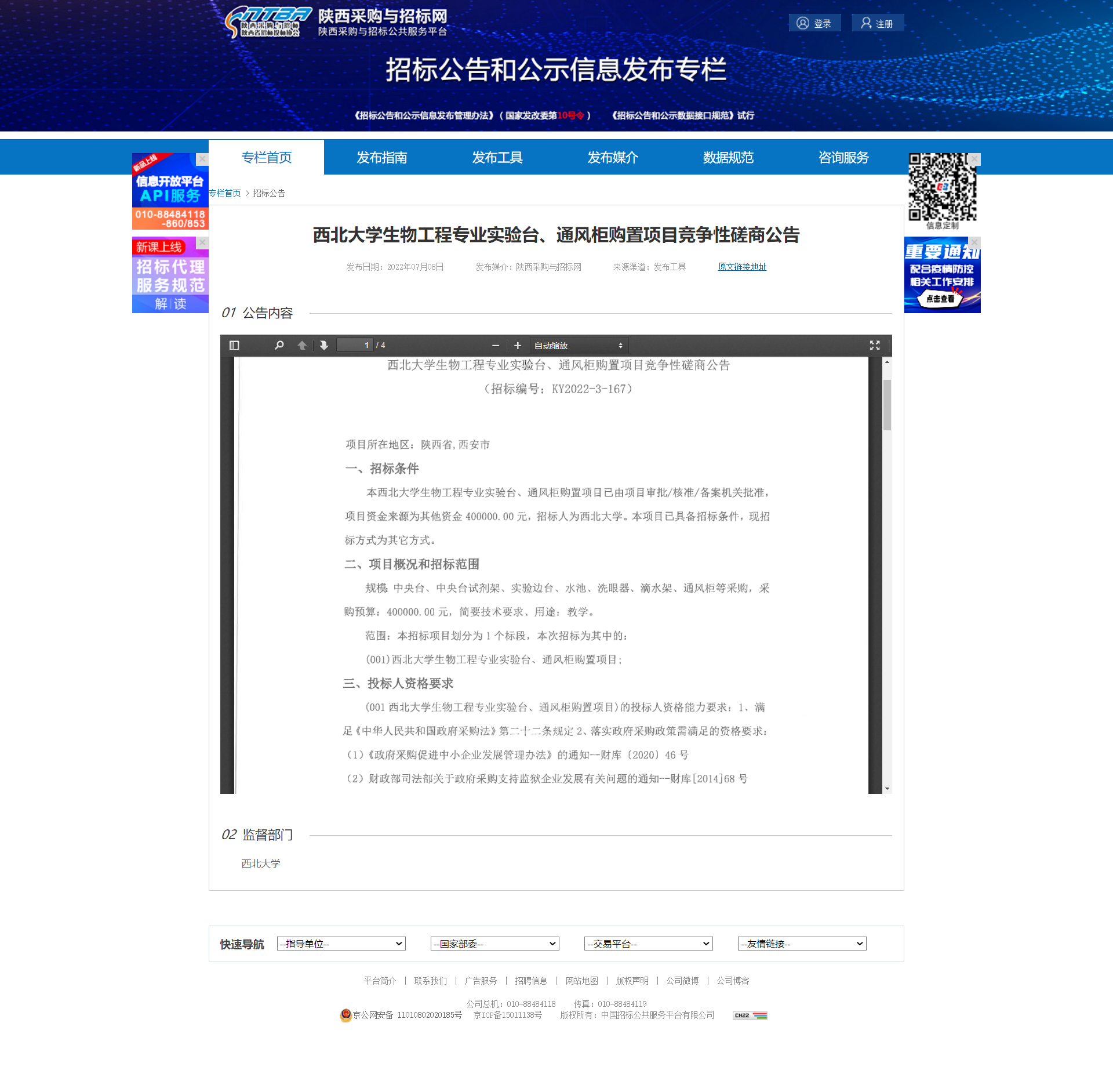星空app官网生物工程专业实验台、通风柜购置项目竞争性磋商公告 作者: 编辑:薛利娟 时间:2022-07-08 原公告链接:http://bulletin.sntba.com/biddingBulletin/2022-07-08/445112.html