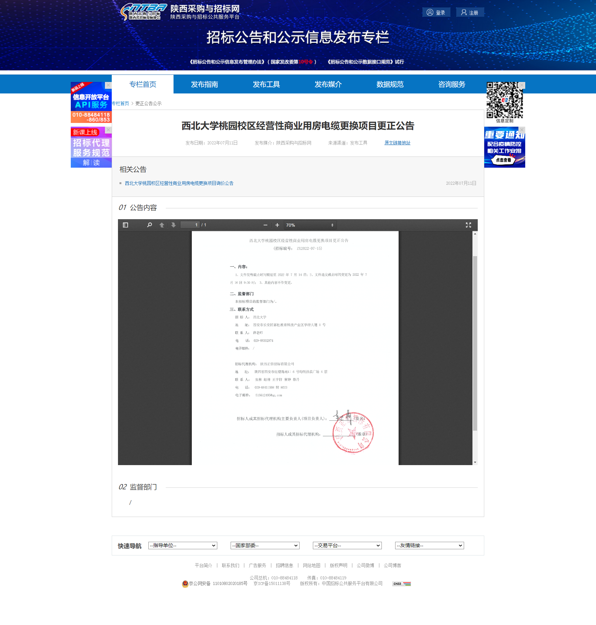 星空app官网桃园校区经营性商业用房电缆更换项目更正公告 作者: 编辑:采购与招标办公室 时间:2022-07-11 原公告链接:http://bulletin.sntba.com/changeBulletin/2022-07-11/445839.html