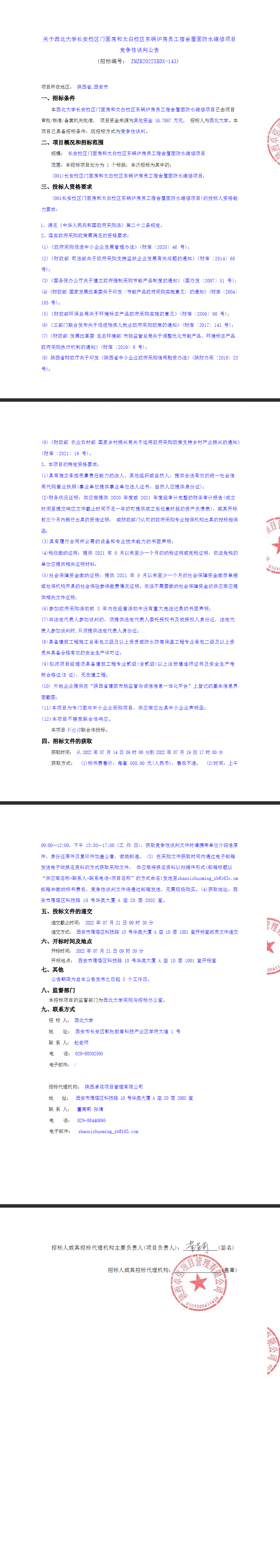 关于星空app官网长安校区门面房和太白校区东锅炉房员工宿舍屋面防水维修项目竞争性谈判公告