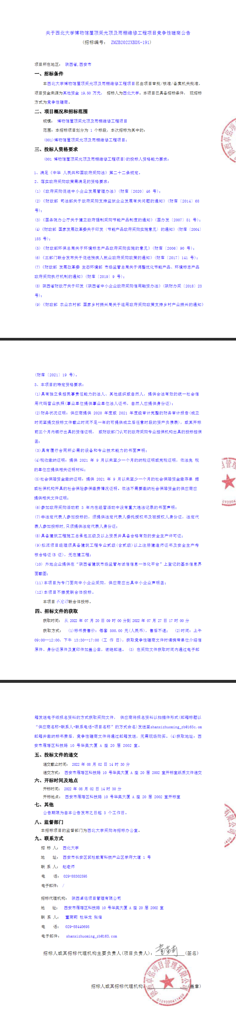 关于星空app官网博物馆屋顶采光顶及雨棚维修工程项目竞争性磋商公告