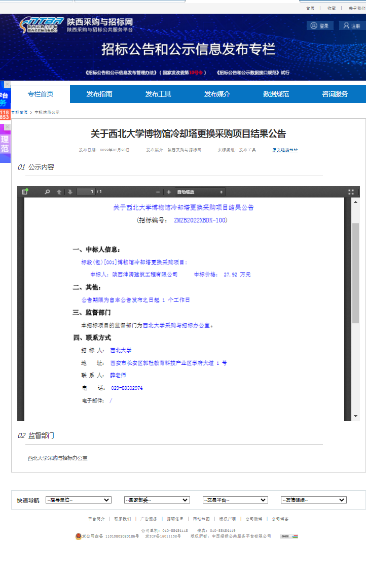 关于星空app官网博物馆冷却塔更换采购项目结果公告 作者: 编辑:薛利娟 时间:2022-07-21 原公告链接:http://bulletin.sntba.com/resultBulletin/2022-07-20/450093.html