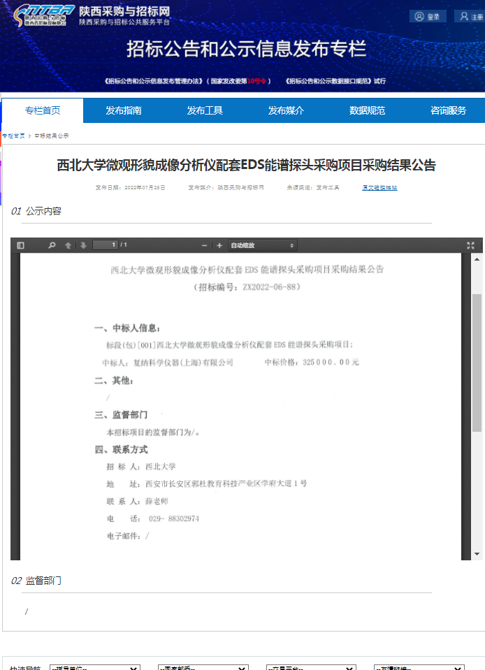 星空app官网微观形貌成像分析仪配套EDS能谱探头采购项目采购结果公告 作者: 编辑:采购与招标办公室 时间:2022-07-25 原公告链接:http://bulletin.sntba.com/resultBulletin/2022-07-25/451944.html