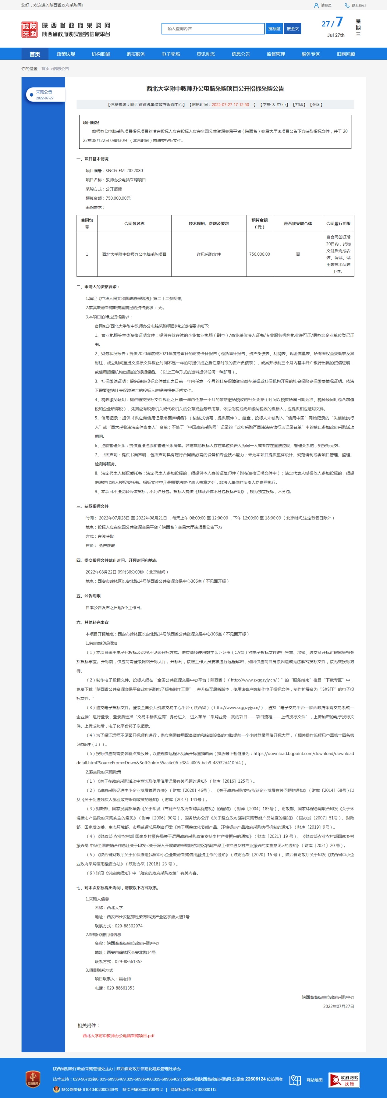星空app官网附中教师办公电脑采购项目公开招标采购公告 作者: 编辑:采购与招标办公室 时间:2022-07-27 原公告链接:http://www.ccgp-shaanxi.gov.cn/freecms/site/shaanxi/ggxx/info/2022/8a69c0148234a3e101823833571f6ce4.html?noticeType=001011¬iceId=b145a98d-0d8c-11ed-9a8e-08c0eb20c666