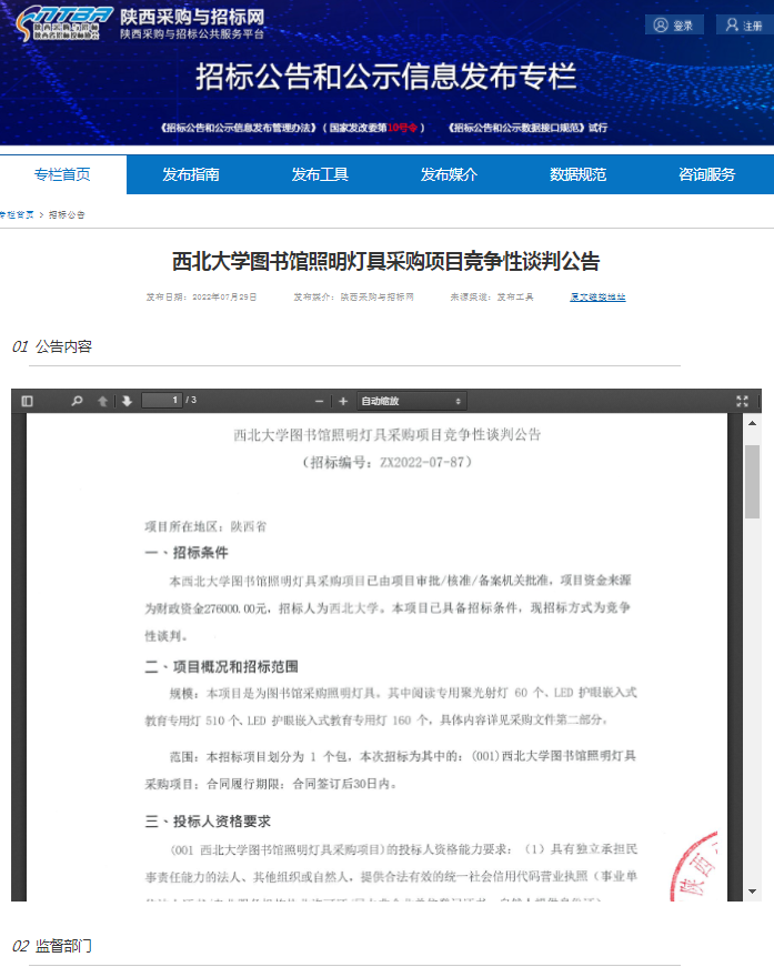 星空app官网图书馆照明灯具采购项目竞争性谈判公告 作者: 编辑:采购与招标办公室 时间:2022-07-29 原公告链接:http://bulletin.sntba.com/biddingBulletin/2022-07-29/454881.html