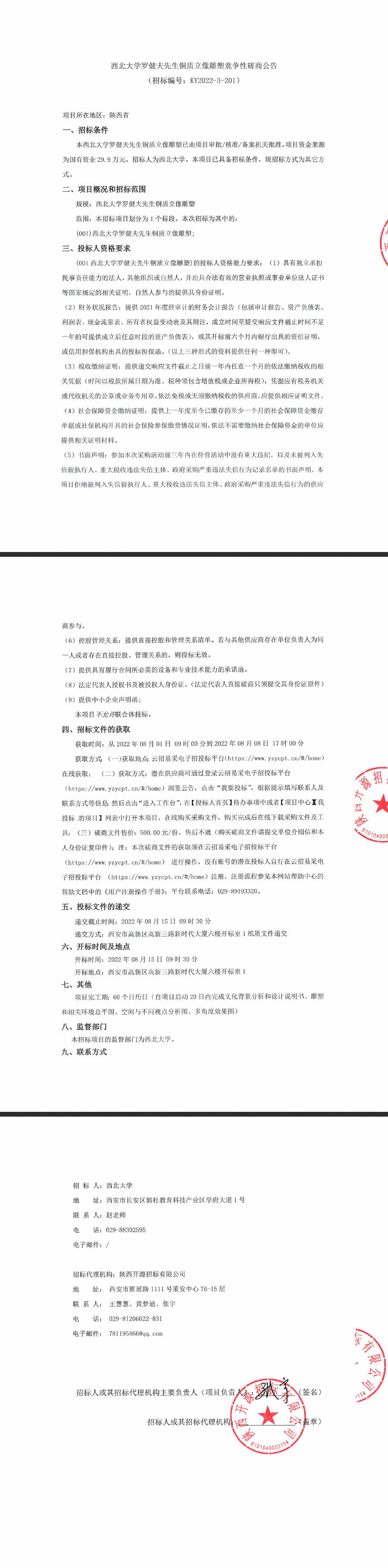 星空app官网罗健夫先生铜质立像雕塑竞争性磋商公告